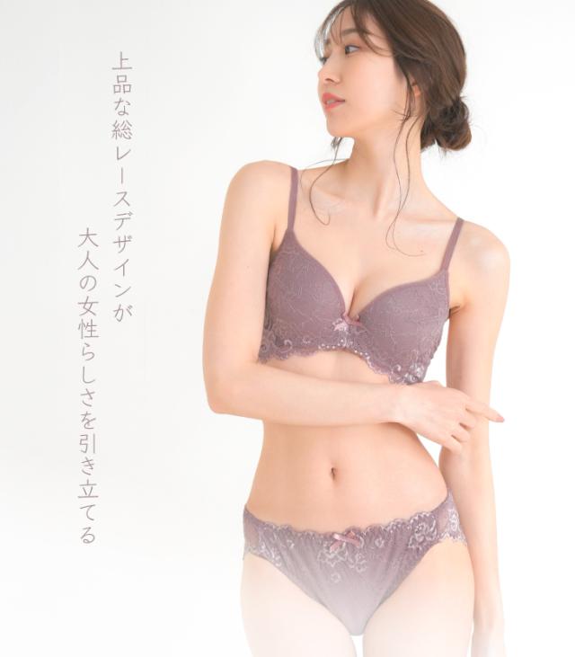上品な総レースデザインが大人の女性らしさを引き立てるブラ&ショーツセット。ワイヤー入りでバストを美しく整えながら、柔らかく軽い着け心地を実現。デイリー使いはもちろん、きちんとしたシーンでも活躍できる控えめなカラーもポイント。ナチュラルで洗練された印象を演出したい日にぴったりの一着です。