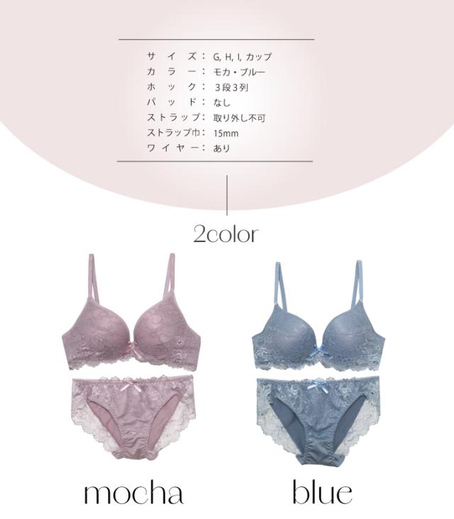 総レース G70 - I95 グラマーサイズ ブラジャー & ショーツセット(J-3662-EF2)[メール便不可]【Gカップ Hカップ Iカップ ブラセット 下着 セット レディース インナー 女性 大きいサイズ 上下セット】