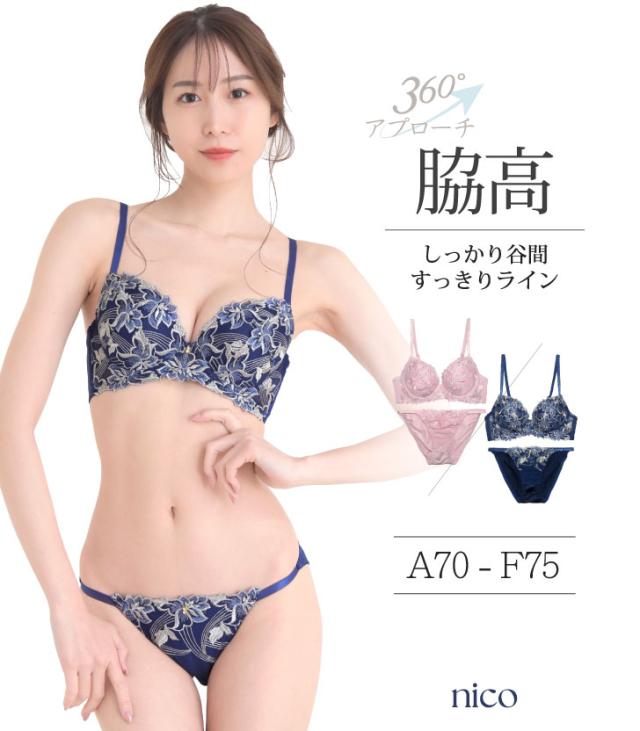 商品名(商品番号):モダンフラワー刺繍レース 脇高 A70−F75 ブラジャー & ショーツセット (j-5214)