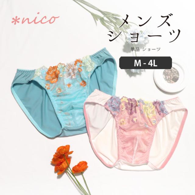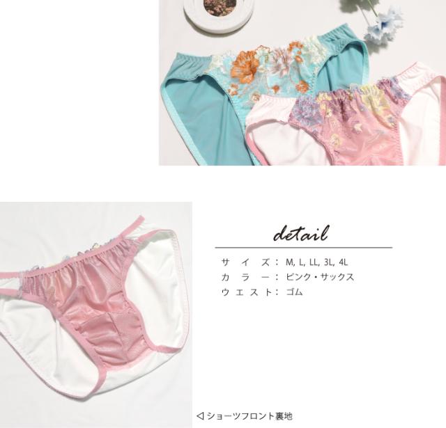 フラワー刺繍 ガーリー 可憐 メンズランジェリー ショーツ (JM-2143-S)[★メール便OK]【 M L LL 3L 4L フルバック メンズショーツ コスプレ 乙女男子 かわいい 】