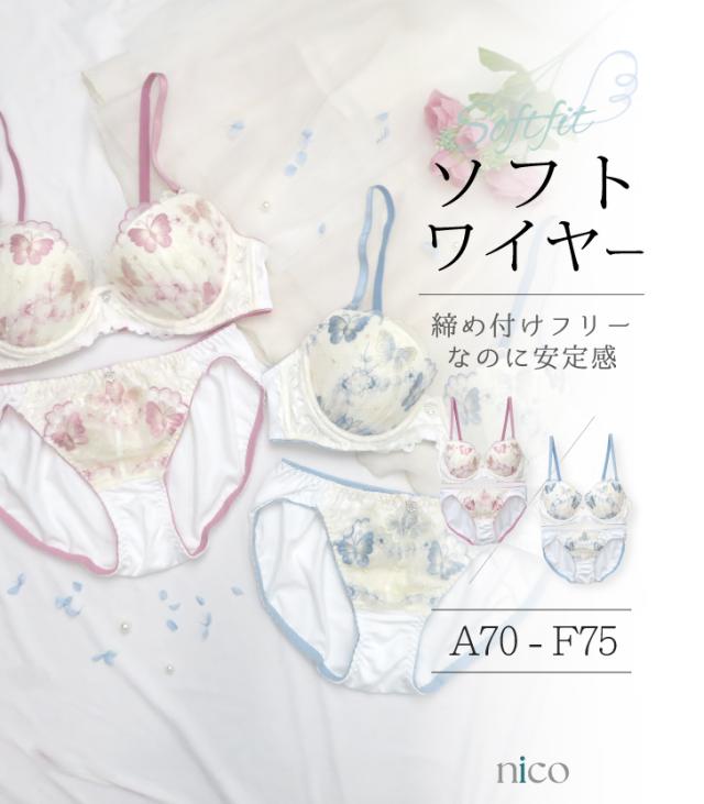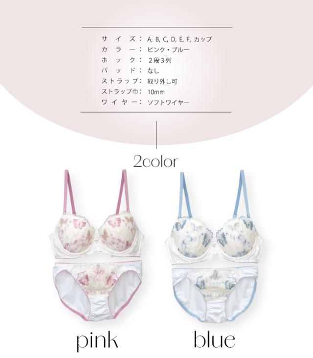 ソフトワイヤー バタフライ刺繍 A70 ? F75 ブラジャー & ショーツセット(J-1266)[メール便不可]【 ブラセット 下着 ブラジャー ショーツ セット レディース インナー 女性 かわいい セットアップ 上下セット】