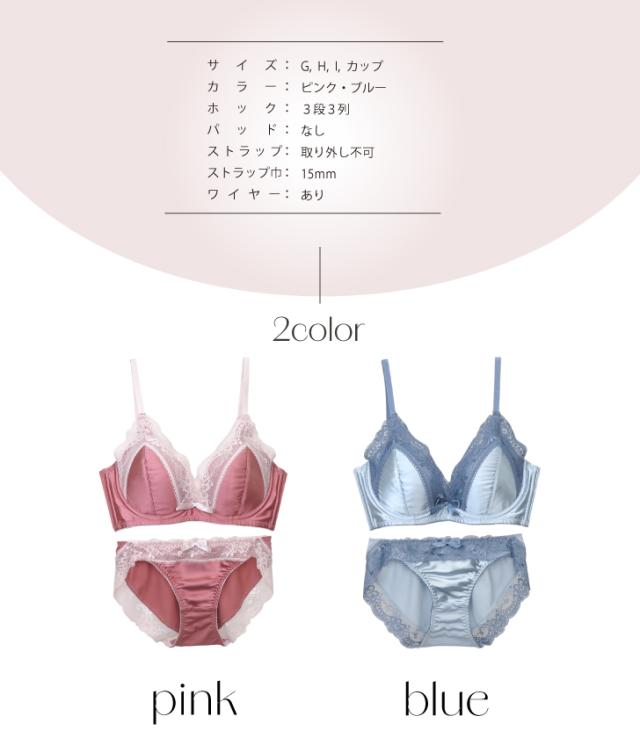 脇高 レース × サテン G70 - I95 グラマーサイズ ブラジャー & ショーツセット(J-5261-EF2)[メール便不可]【Gカップ Hカップ Iカップ ブラセット 下着 セット レディース インナー 女性 大きいサイズ 上下セット】