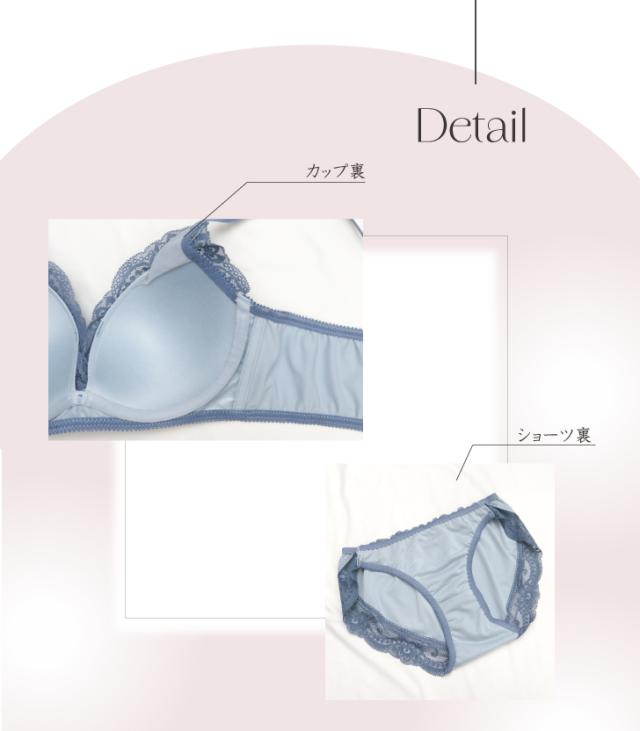 繊細なレースと上品な光沢のサテンが魅力のブラジャー&ショーツセット。バストを美しく引き立てるカップデザインと、やさしくフィットする素材で快適な着け心地を実現。フェミニンなピンクとクールなブルーの2色展開。デイリー使いはもちろん、特別な日にもぴったりな華やかさを演出します。細部までこだわったディテールが、大人の女性らしい洗練された印象をプラス。自分へのご褒美やギフトにもおすすめです。