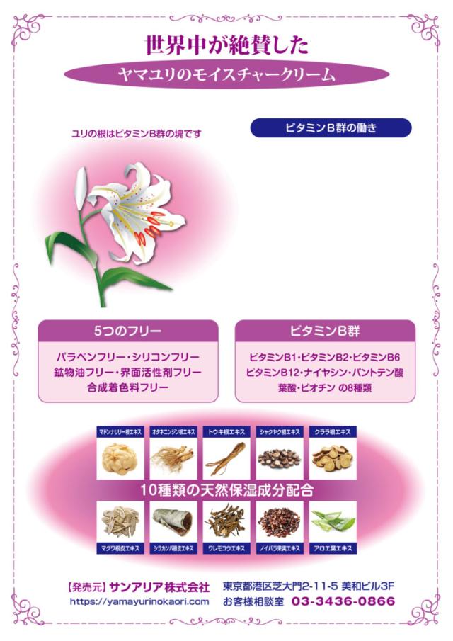 | 商品名 | ヤマユリの香 モイスチャークリーム |