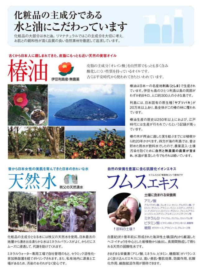 | 成分 | 水、グリセリン、ミリスチルアルコール、ベヘニルアルコール、ハチミツ、プロパンジオール、ベヘナミドプロピルジメチルアミン、ツバキ油、フムスエキス、ダマスクバラ花水、センブリエキス、トウキ根エキス、チョウジエキス、ショウガ根茎エキス、セイヨウハッカ葉エキス、褐藻エキス、紅藻エキス、チャ葉エキス、アラニン、ベヘニルPGトリモニウムクロリド、ラウロイルグルタミン酸ジオクチルドデセス−5、ラウロイルアルギニン、ジヒドロキシプロピルアルギニンHCl、フェノキシエタノール、カプリロイルグリシン、ビスジグリセリルポリアシルアジペート−2、ジラウロイルグルタミン酸リシンNa、ステアリン酸グリセリル、香料、キャンデリラロウ、ヒドロキシエチルセルロース、乳酸、エタノール |
