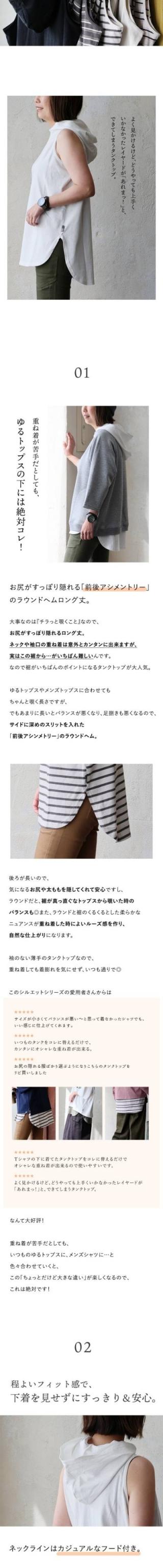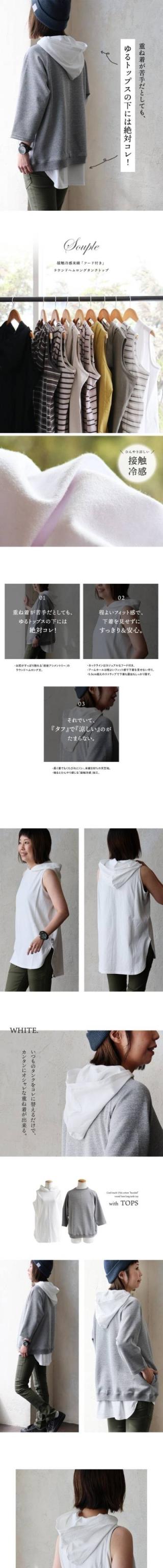 【メール便50】 重ね着 タンクトップ レディース ロング丈 フード付き ワイド 着ぶくれない 胸が見えない 薄手 吸水 綿 しっかり 丈夫 コットン 伸びる 軽やか 胸元 ブラ紐 お尻 カバー パティ Souple スプル