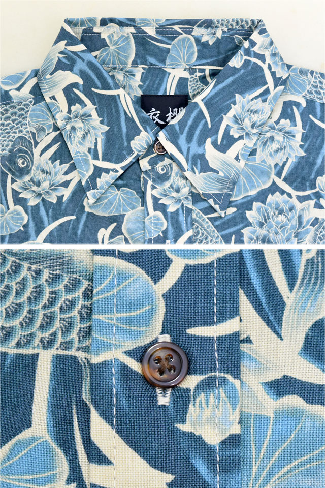| 半袖レギュラーカラーシャツ「蓮鯉」◆衣櫻 KSK-M09611 | |||||||||||||||||||||||||