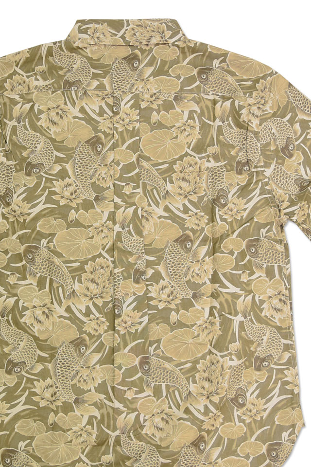 抜染で蓮鯉を総柄調にデザインした、インパクト抜群の半袖シャツが登場しました!