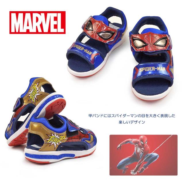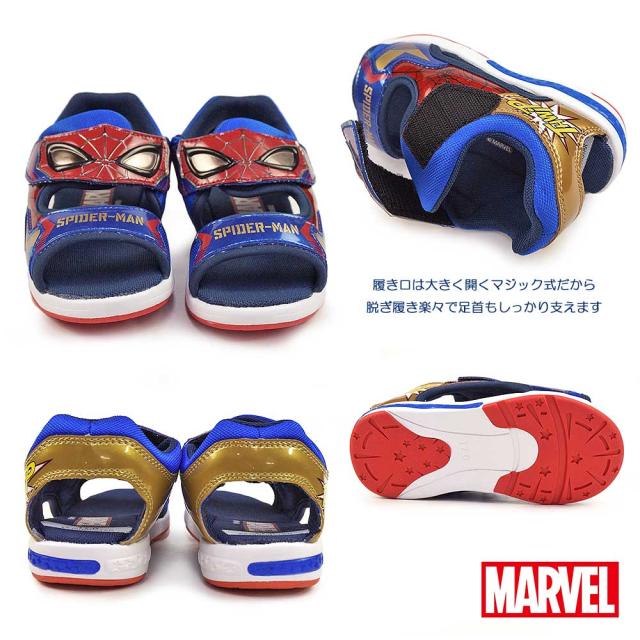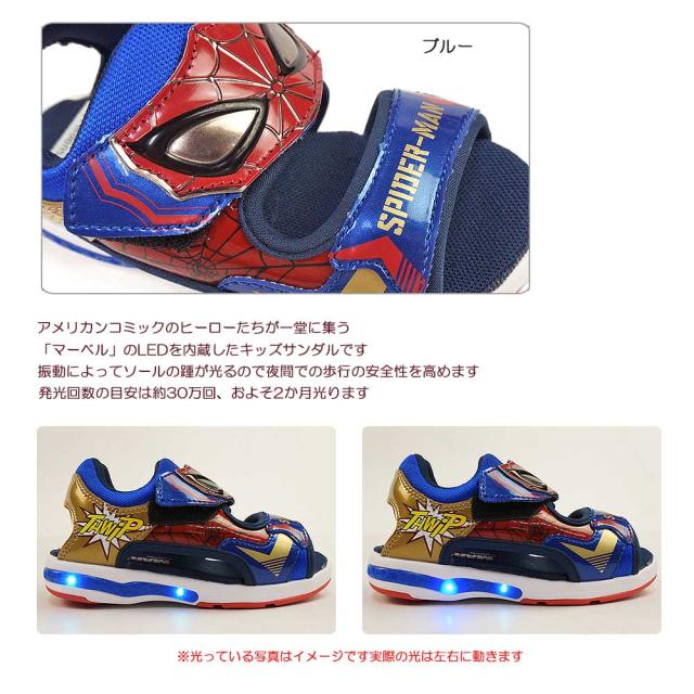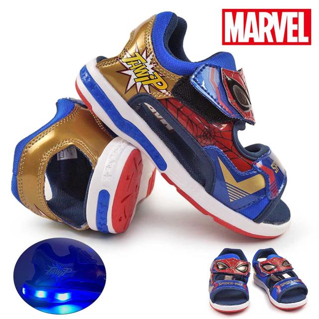 ムーンスター 光る靴 キッズ サンダル MV 026 マーベル スポーツサンダル マジック式 子供靴 MoonStar MARVEL スパイダーマン