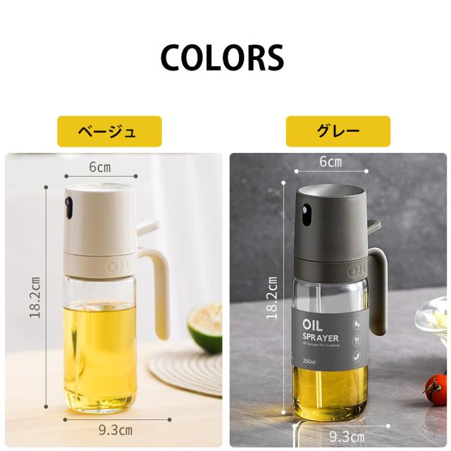 オイルスプレー 耐熱ガラス 霧吹き 油 オイルボトル 250ml 極細のミスト 油ポット 料理用 油さし 透明 スプレー ガラス 食用油 漏れ防止 キッチン用具 液だれしない キャンプ 調味料入れ 詰め替え容器 スプレー容器
