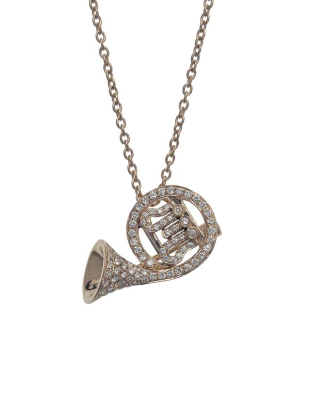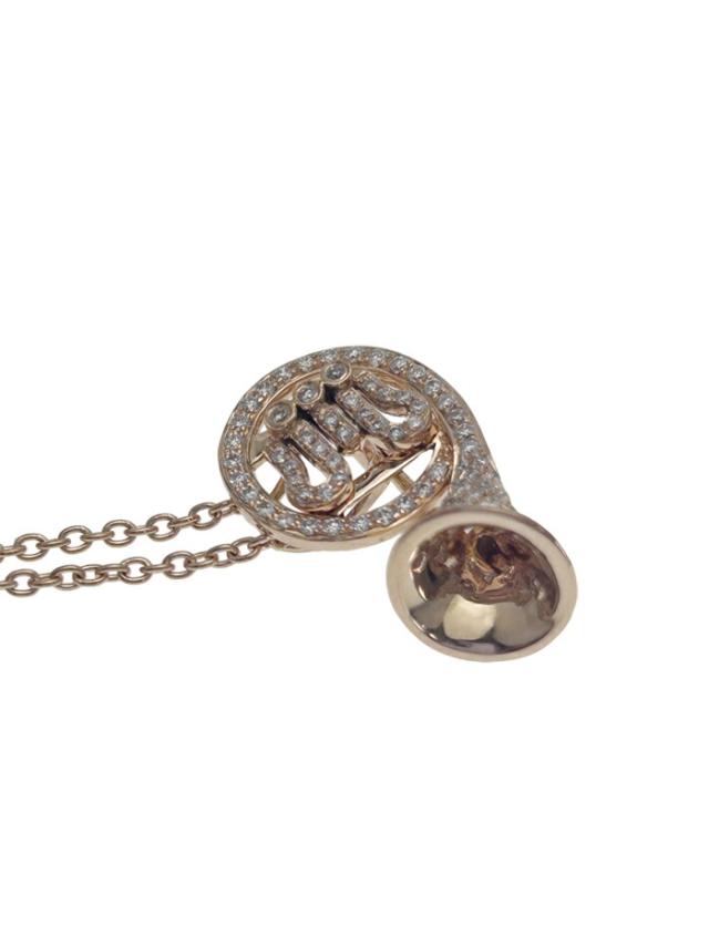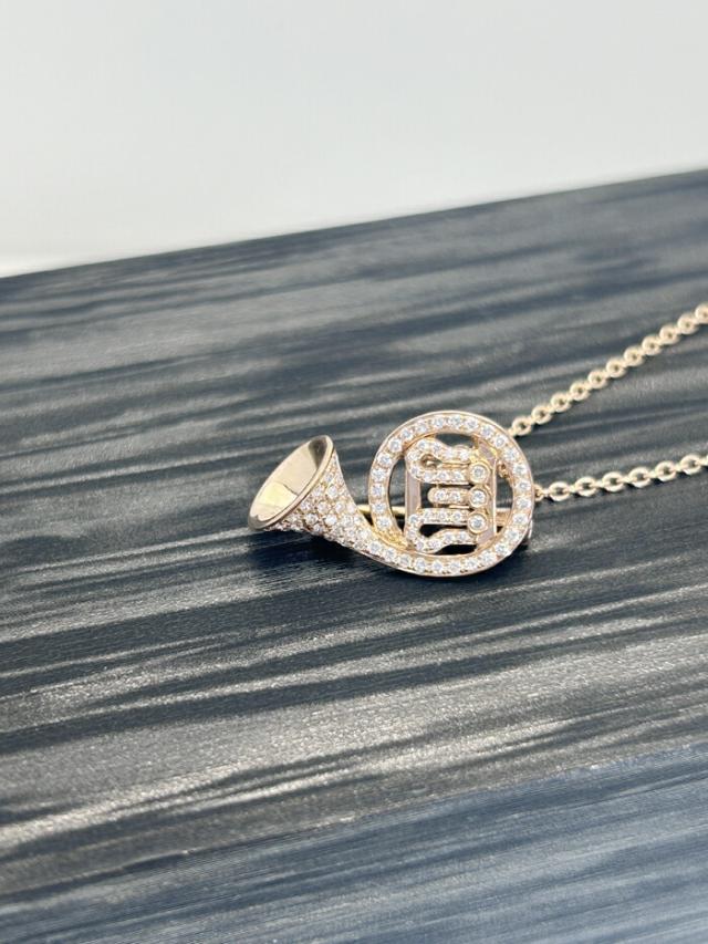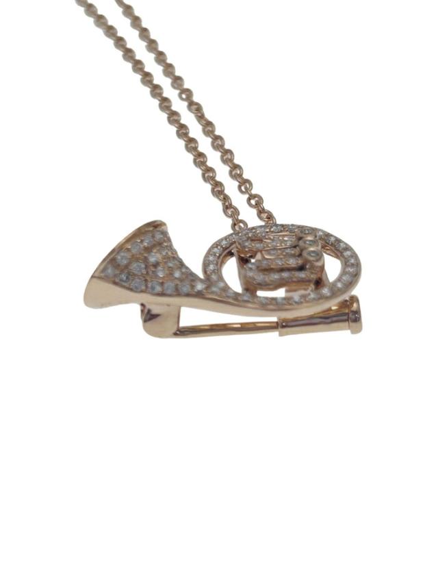 ホルン K18PG ネックレス ペンダント ブローチ ダイヤモンド メンズ レディース きらきら かわいい 楽器 ボリューム 管楽器 吹奏楽 モチーフ 現品限り 一点もの