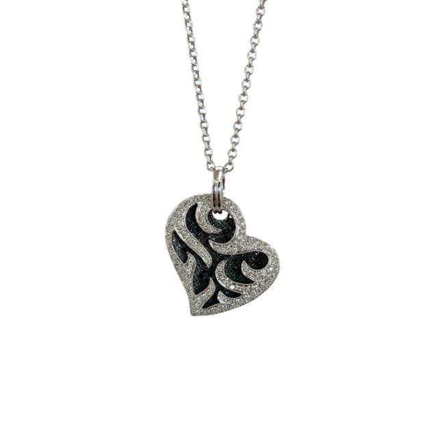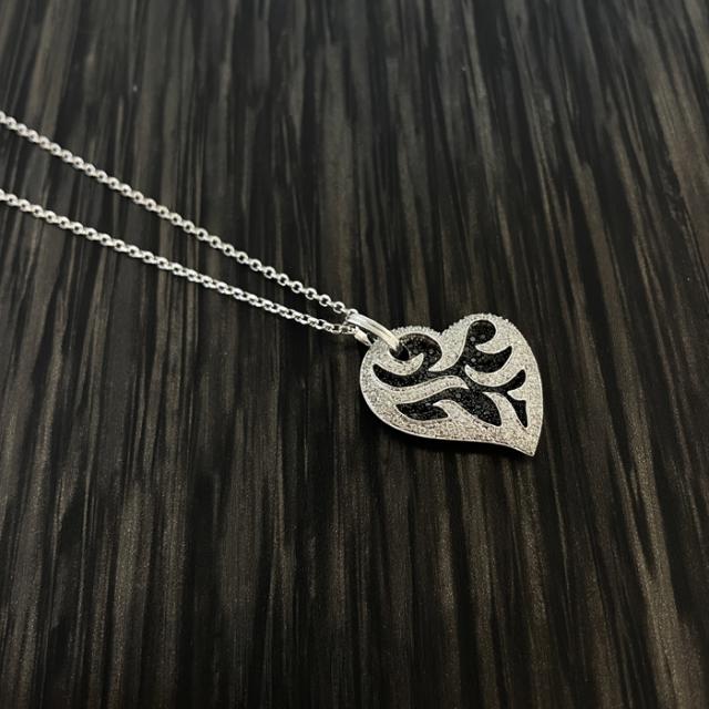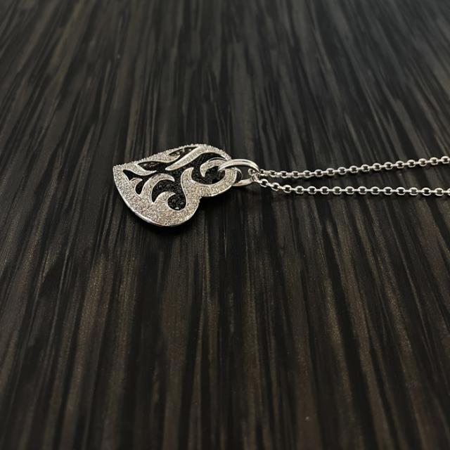 ダイヤモンドとブラックトリートダイヤモンドをハートのモチーフにした可愛いペンダントです。