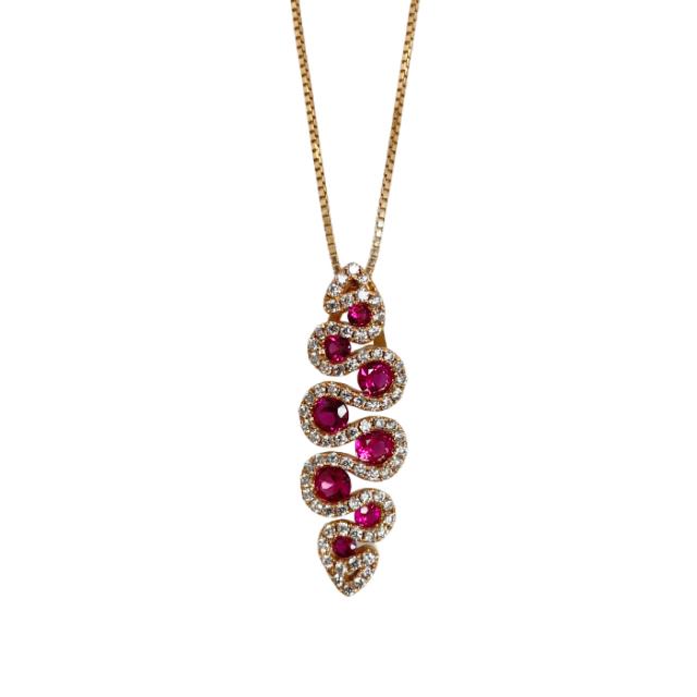 K18PG ルビーペンダント 0.7ct ダイヤモンド ネックレス 誕生石 天然石 おしゃれ 可愛い かわいい レディース プレゼント 現品限り 一点もの