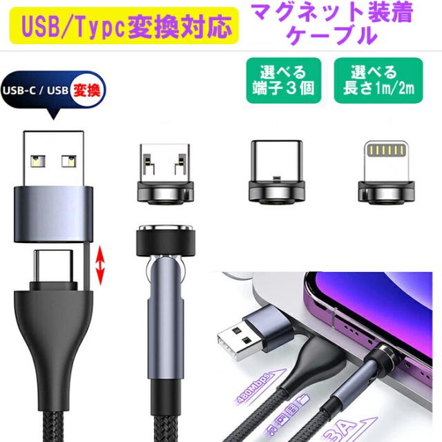 【選べる端子/長さ】1m 2m Type-C USB 変換 データ転送 充電ケーブル マグネット 充電器 端子3個付き 急速充電 マルチ iphone IOS Apple android スマホ Lightning タイプc type-c マイクロUSB microUSB iqos タブレット 充電コード 磁石