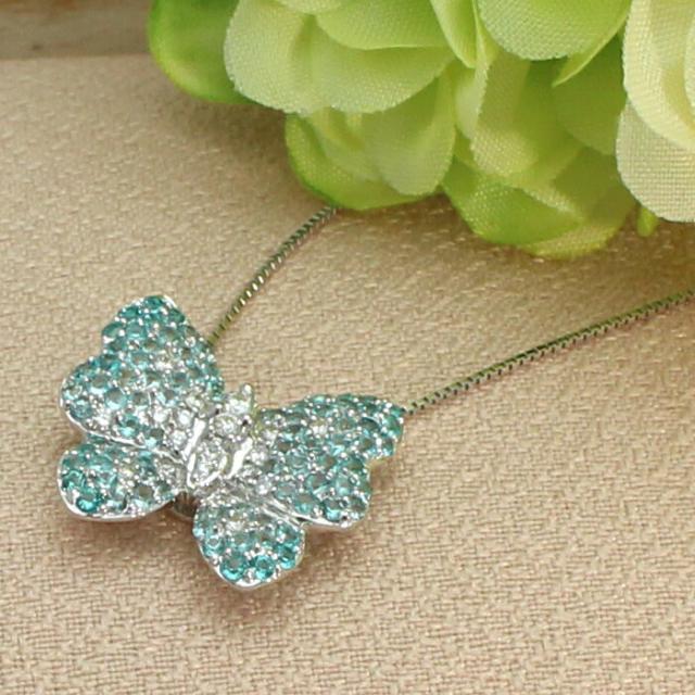 パライバトルマリン 蝶 ペンダント ネックレス K18WG チョウ 1点もの ちょうちょ バタフライ ダイヤモンド モチーフ かわいい さわやか 大ぶり レアストーン 品質保証書付