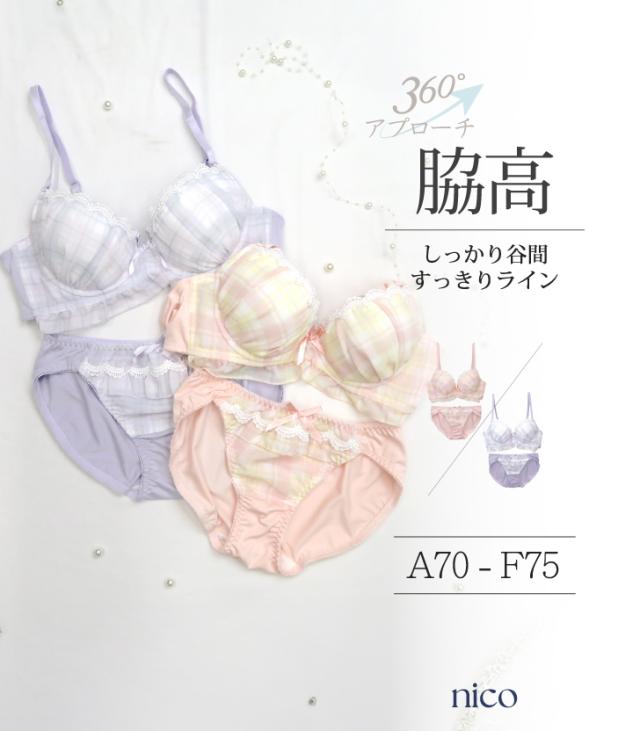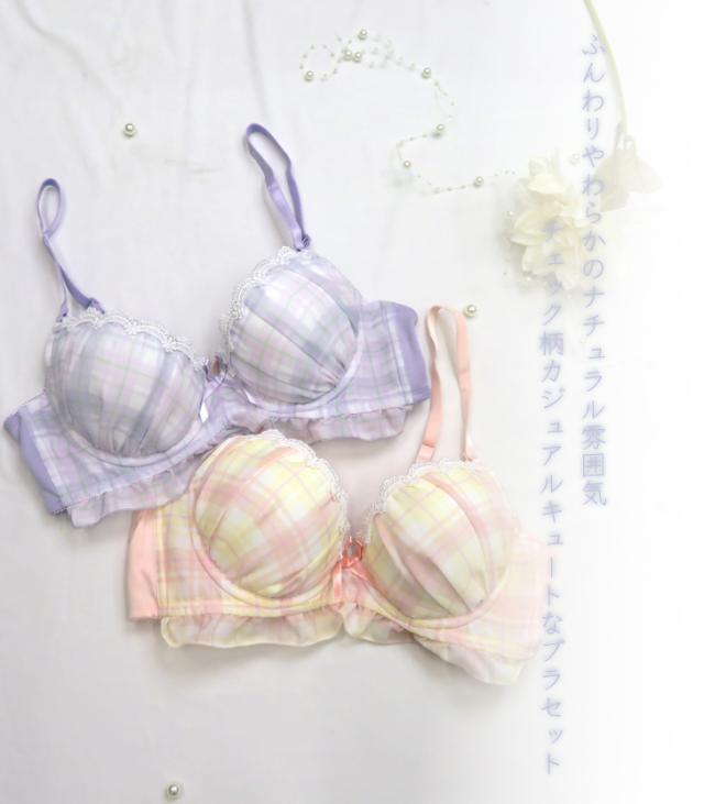 脇高 チェック柄 A70 ? F75 ブラジャー & ショーツセット(J-1272)[メール便不可]【 ブラセット 下着 ブラジャー ショーツ セット レディース インナー 女性 かわいい セットアップ 上下セット】