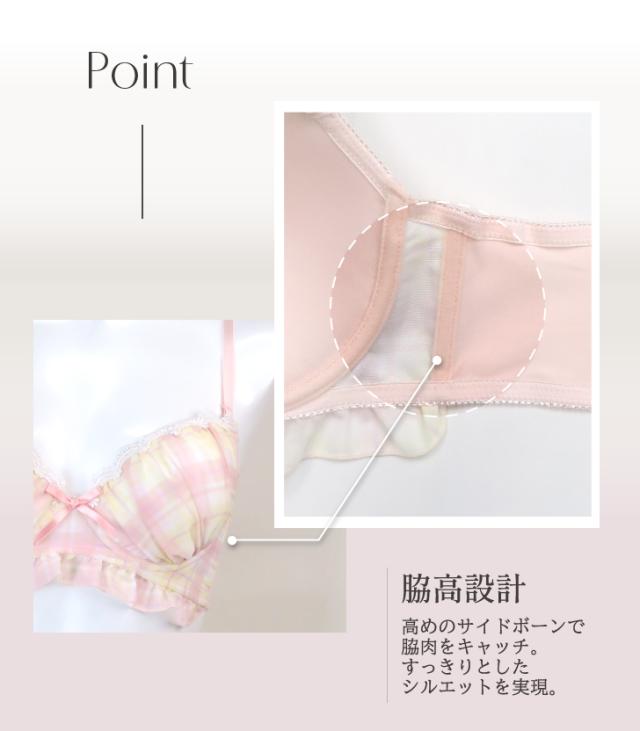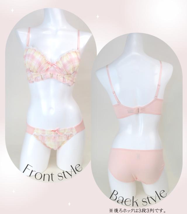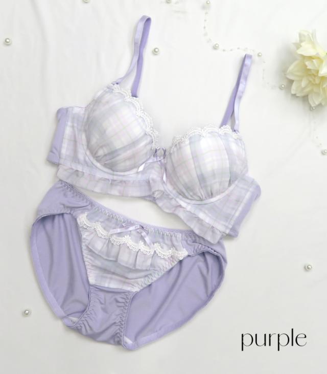 ナチュラルで可愛らしいチェック柄が魅力のブラジャー&ショーツセット。レースのディテールと小さなリボンが女性らしさを引き立てます。バストをやさしく包み込むカップと、ソフトなフィット感で快適な着心地を実現。柔らかく甘い印象のオレンジと爽やかなパープルの2色展開。デイリー使いにぴったりな、カジュアルでキュートなデザインです。毎日をちょっぴり特別にしてくれる一着を、ぜひお試しください。