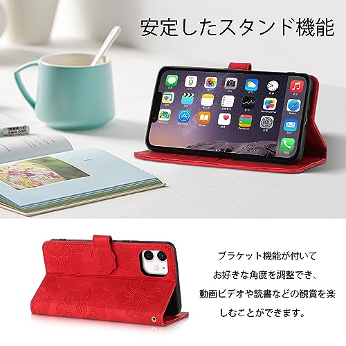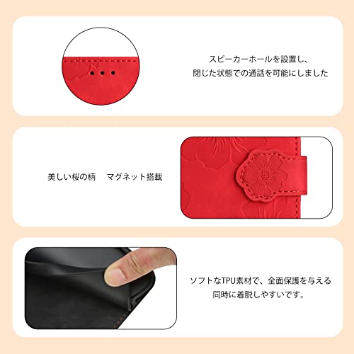 iphone12 ケース 手帳型 iphone12pro ケース 手帳型 おしゃれ あいふぉん12ケース手帳型 人気 アイフォン12 ケース手帳型 アイフォン12 プロケース 手帳型 本革 PUレザー カバー あいふぉん12プロ/iPhone12/ 12プロ ケース 手帳型 スマホケース カバー かわいい 美しい桜の柄 カード収納 マグネット式 スタンド機能[6.1インチ]あか