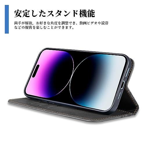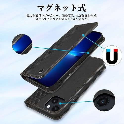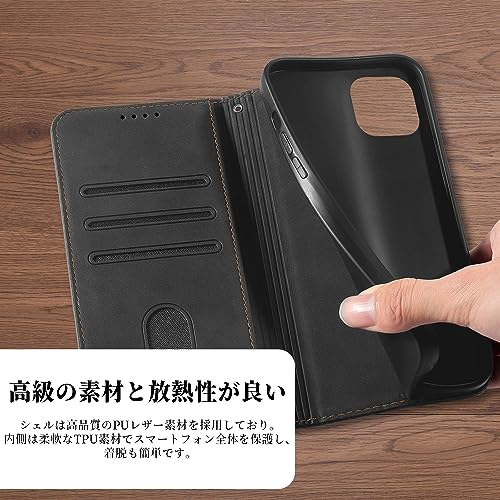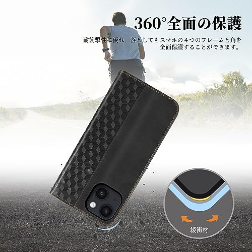 iPhone 15 ケース 手帳型 シンプル アイフォン 15 ケース 手帳型 本革 PUレザー 耐衝撃 人気 iPhone15 手帳型 ケース スマホケース おしゃれ iPhone 15 手帳カバー お洒落 あいふぉん15 ケース カバー スマホケース 携帯カバー カード収納 横置き機能 マグネット 全面保護 耐摩擦 防塵 傷つけ防止 軽量 便利(6.2インチ)ブラック