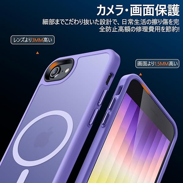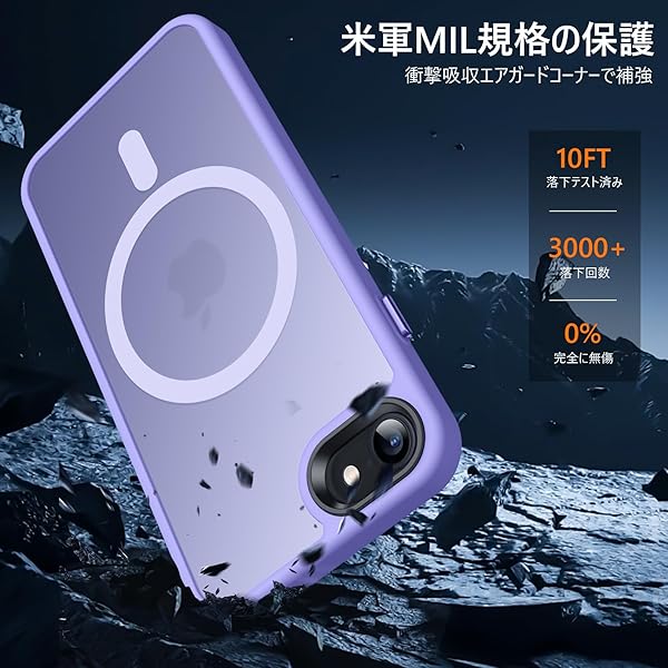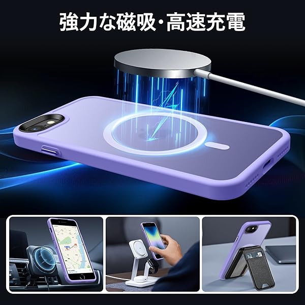 iPhone 14 用ケース/iPhone 13 用ケース Magnetic対応 クリア 耐衝撃 衝撃吸収 マグネット搭載 全面保護カバー アイフォン14 13 用ケース 透明 6.1インチ マット ストラップホール付き 黄変しにくい 指紋防止 耐久 おしゃれ 人気 携帯カバー 浅紫