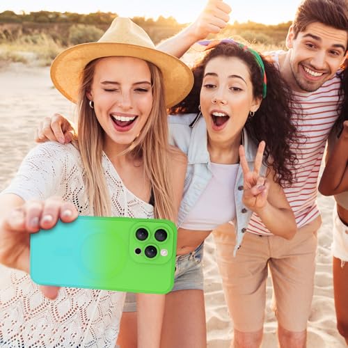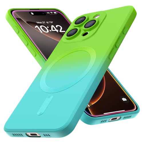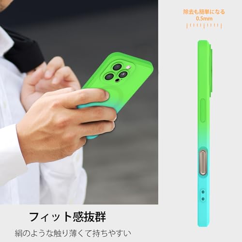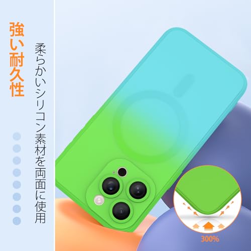 iPhone 16 Pro 用 ケース TPU 薄型 軽量 ケース 耐衝撃 マグネット搭載 ストラップホール付き スマホケース シリコン 背面ワイヤレス充電 黄変防止 すり傷防止 マグセーフ対応 人気 アイフォン16 プロ 用カバー グリーン/ブルー 送料無料