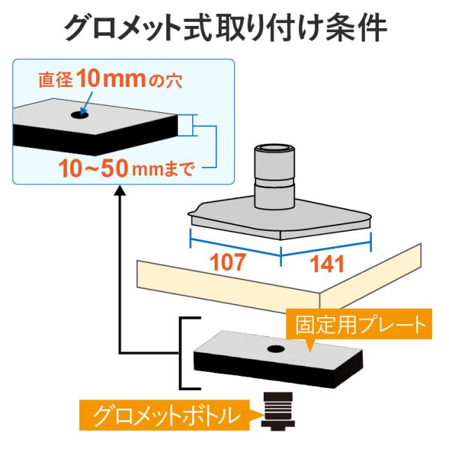 ●Cクランプ式/グロメット式の2種類の設置方法に対応