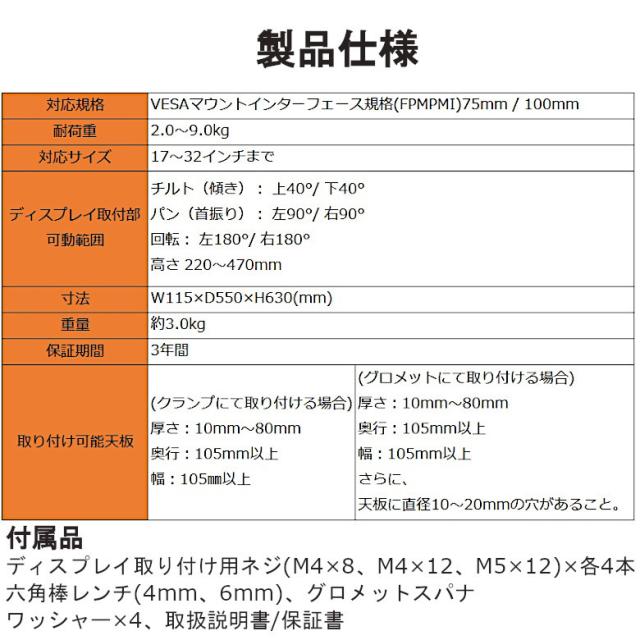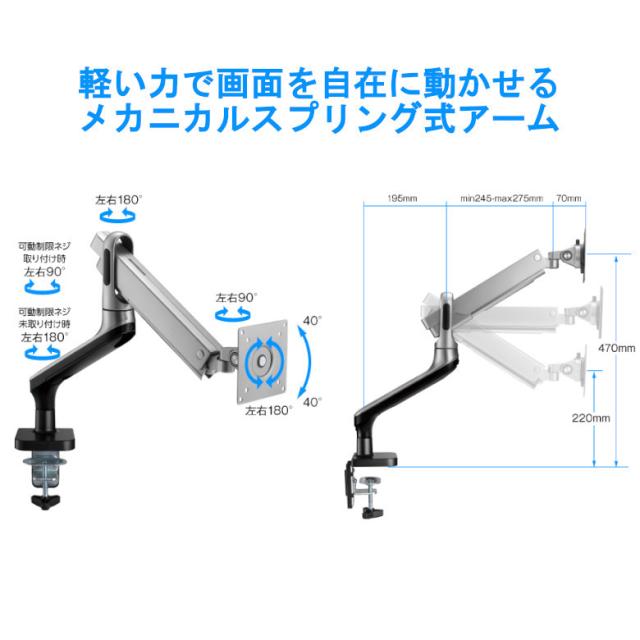・軽い力で画面を自在に動かせるメカニカルスプリング式アーム