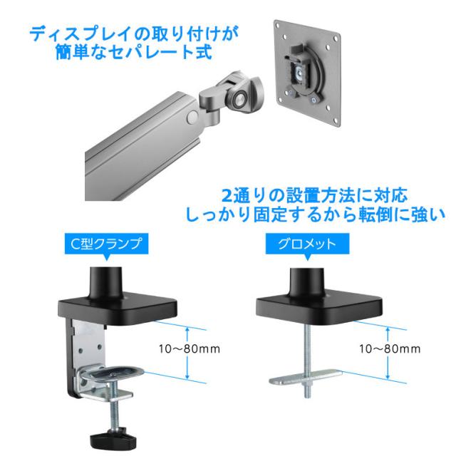 モニターアーム 17-32インチ メカニカル 耐荷重2-9kg 4軸 VESA ディスプレイアーム モニター アーム シングル GH-AMDH1-SV グリーンハウス