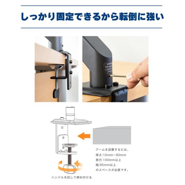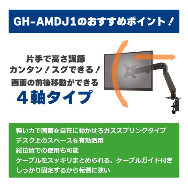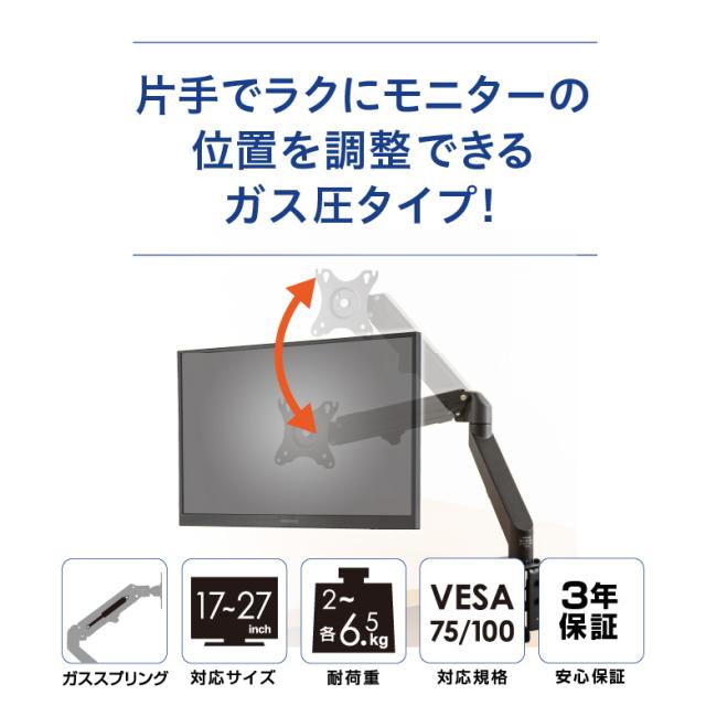 モニターアーム ガス圧式 ガススプリング 白 17-27インチ ディスプレイ ホワイト ゲーミングモニター シングル パソコン GH-AMDJ1 グリーンハウス