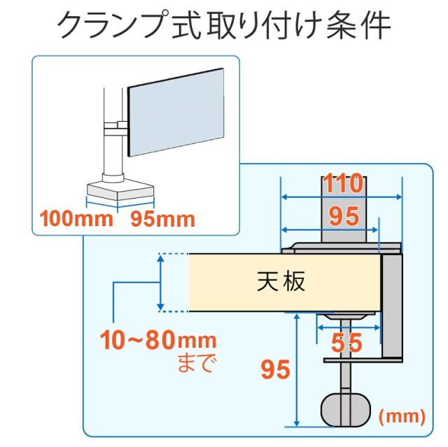 ●取付可能天板:厚さ 10mm〜80mm、奥行 100mm以上、幅 95mm以上