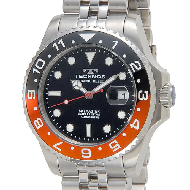 TECHNOS テクノス メンズ 腕時計 ブラック×レッド T9C11SH デイト 回転ベゼル