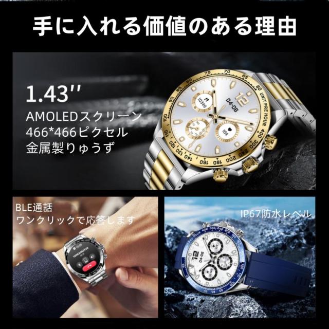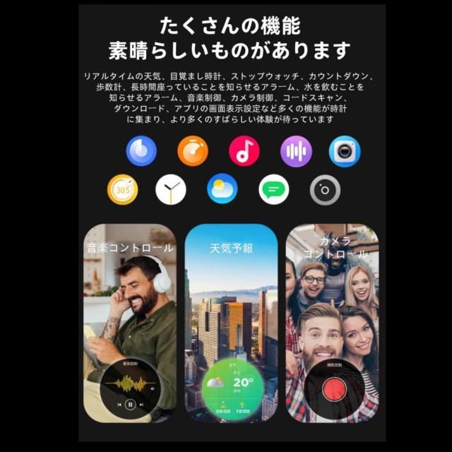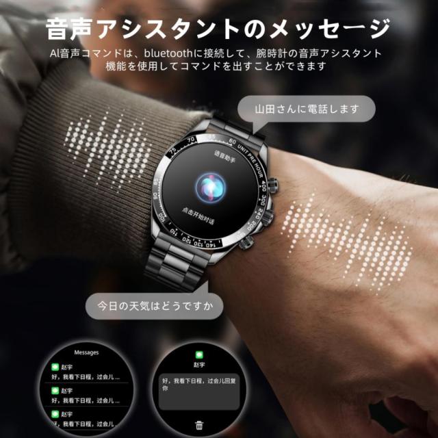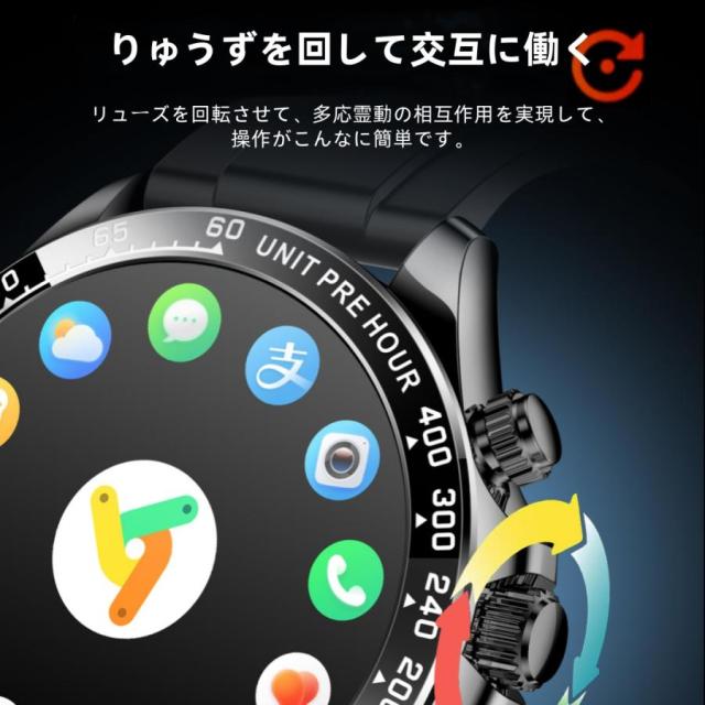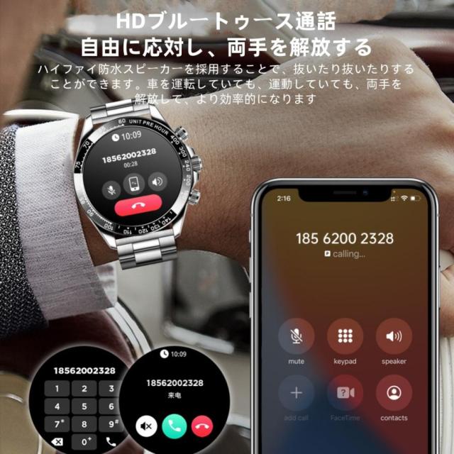 【通話機能?着信通知】ペアリング設定を済まして、連携した携帯電話に届いた着信やメール、LINE、Skype、Facebook(Meta)、Twitter(X)、Instagram、SNSの受信などの通知をスマートウォッチに同期できます。着信やメッセージを見逃す心配はいりません。スピーカーとマイクを内蔵し、携帯電話を出さなくても、通話することができます。