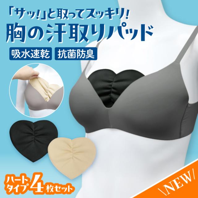 胸の汗取りパッド ハートタイプ 2枚組2セット ワイド 谷間 汗 吸水 速乾 汗臭 ニオイ 消臭 抗菌 防臭 汗シミ 汗染み 対策 防止 ムレ 東洋紡 スタイルセレブリティ 復刻 再販