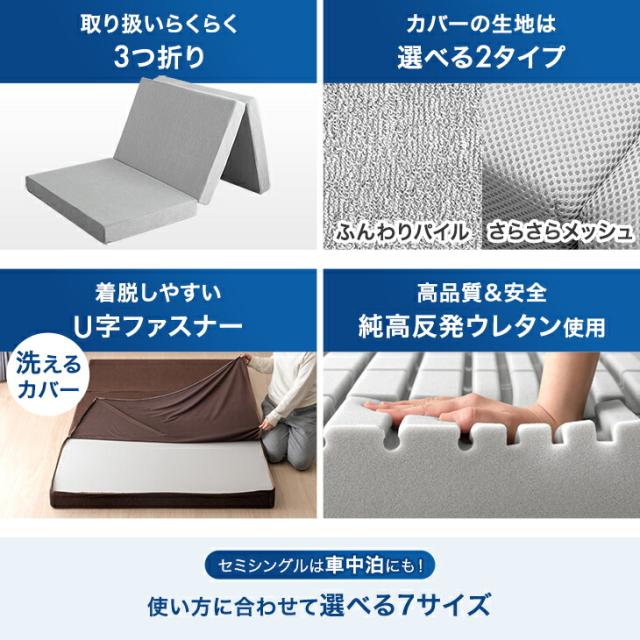 3つ折り 高反発 マットレス 10cm厚 シングル 敷布団 敷き布団 敷きふとん 敷ふとん 昼寝マット ごろ寝マット 寝具 コンパクト 折り畳み 洗える カバー