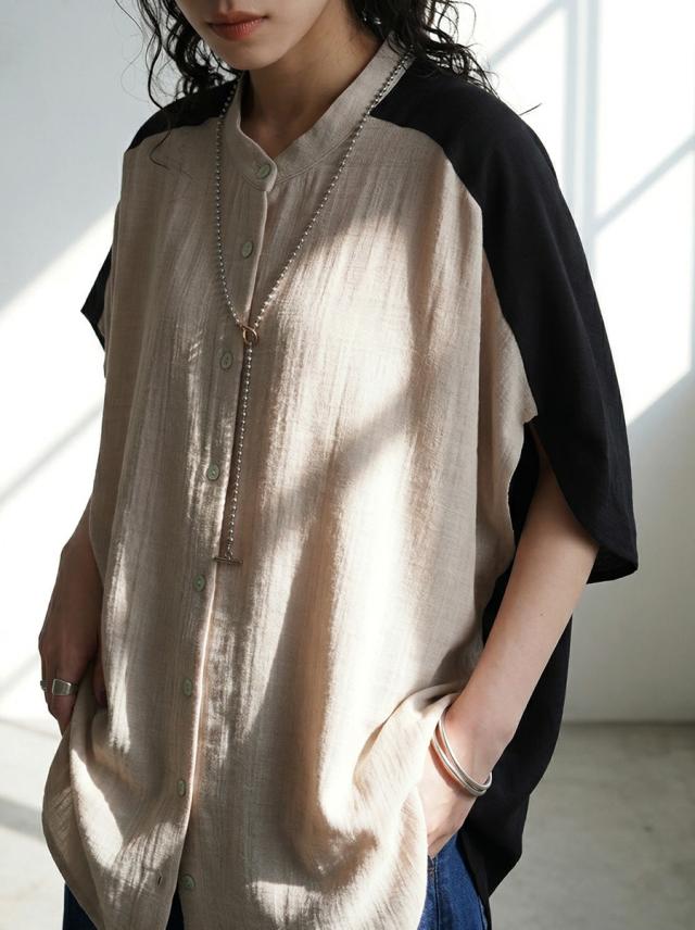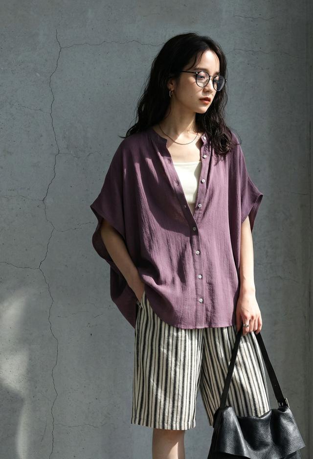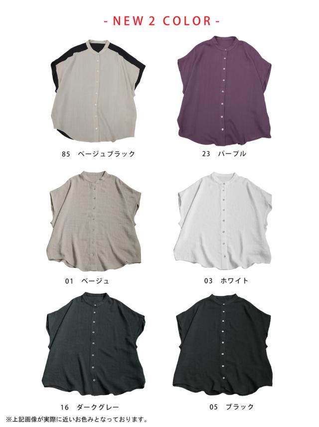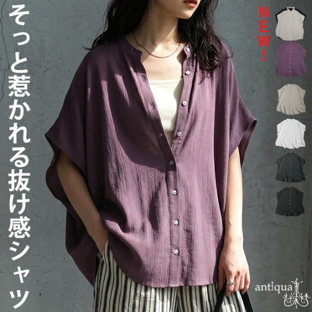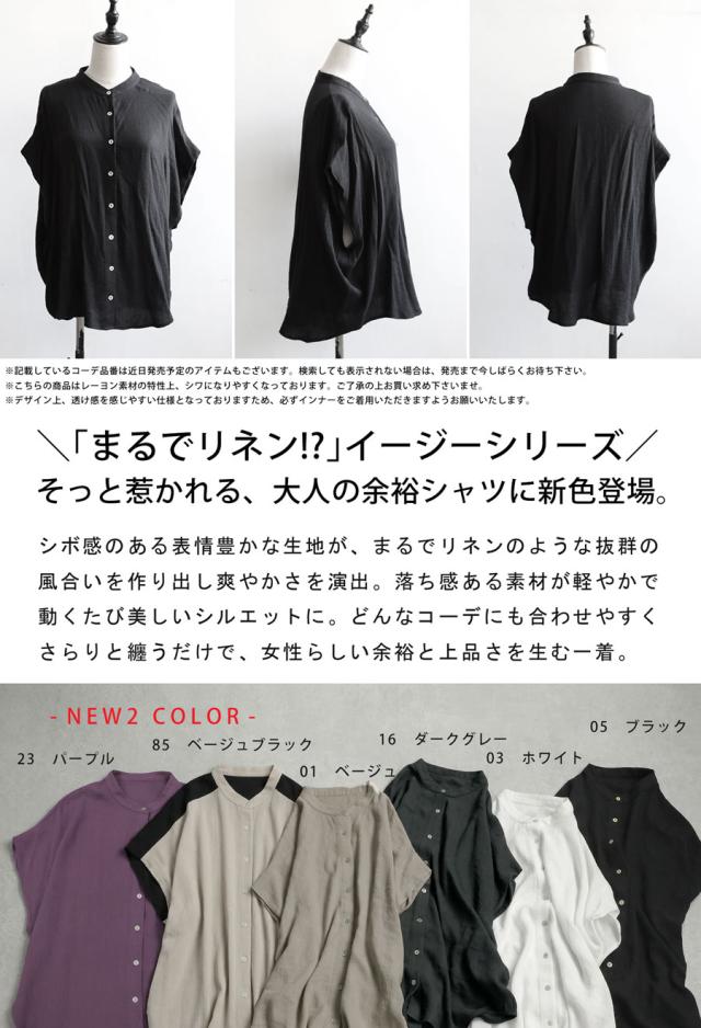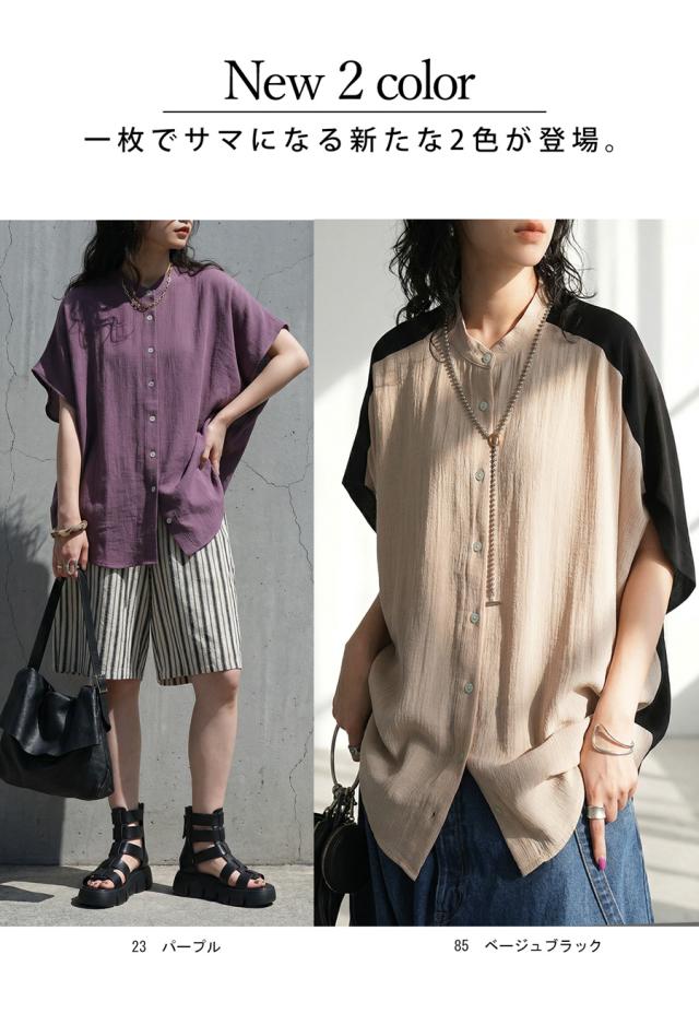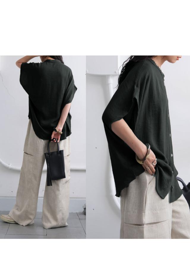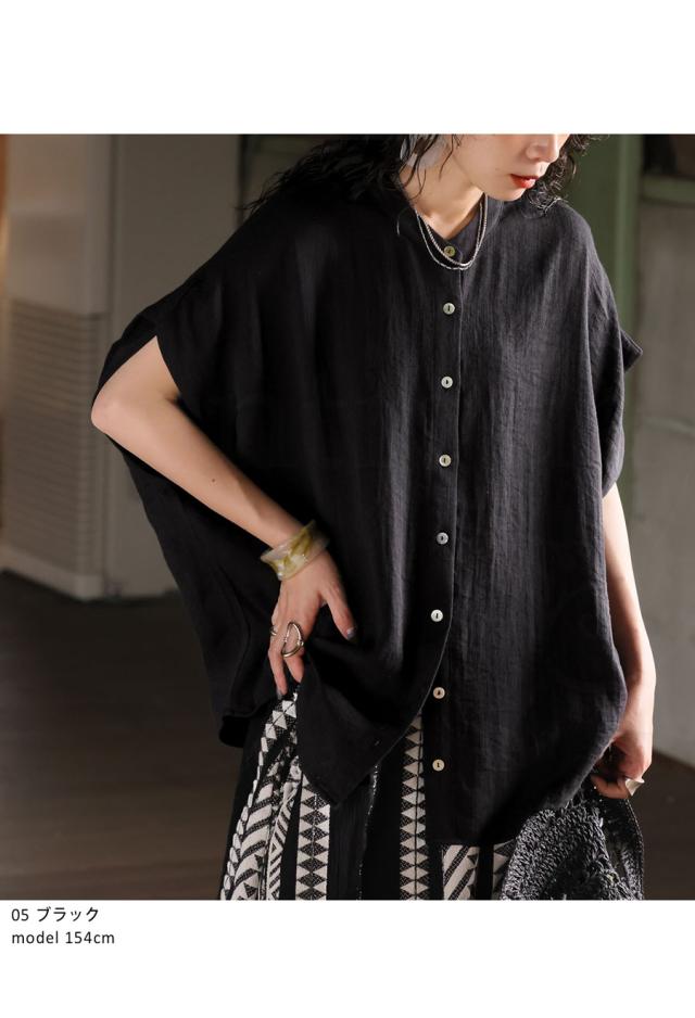 リネンライク シャツ レディース 半袖 バンドカラー 送料無料・新色登場 再入荷 (80)メール便可