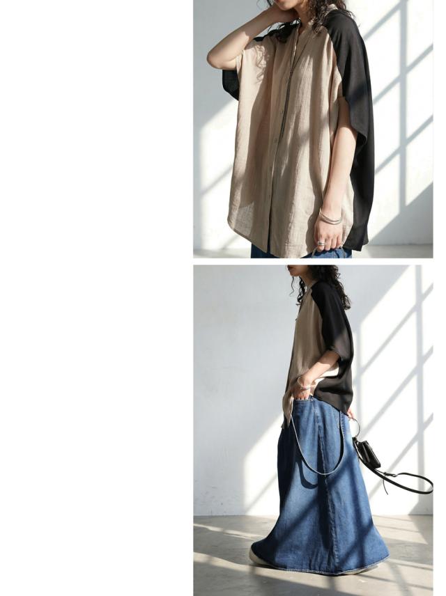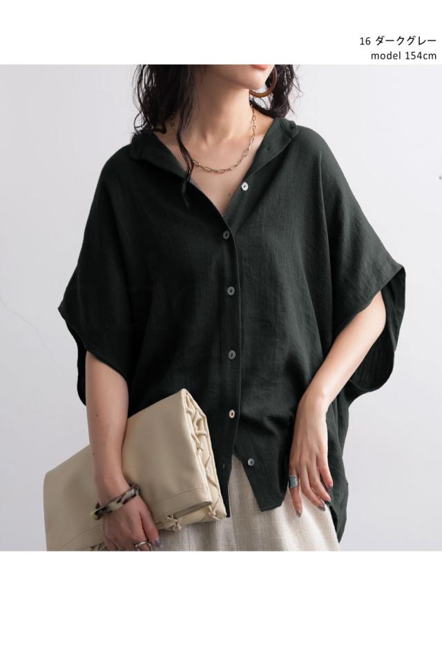 pk-01350 ドルマン 羽織り 前開き 無地 リネン風 ゆったり 体型カバー 涼し気 ナチュラル カジュアル シンプル 大人 上品 抜け感 リラックス レイヤード 着回し ボタン ブラウス