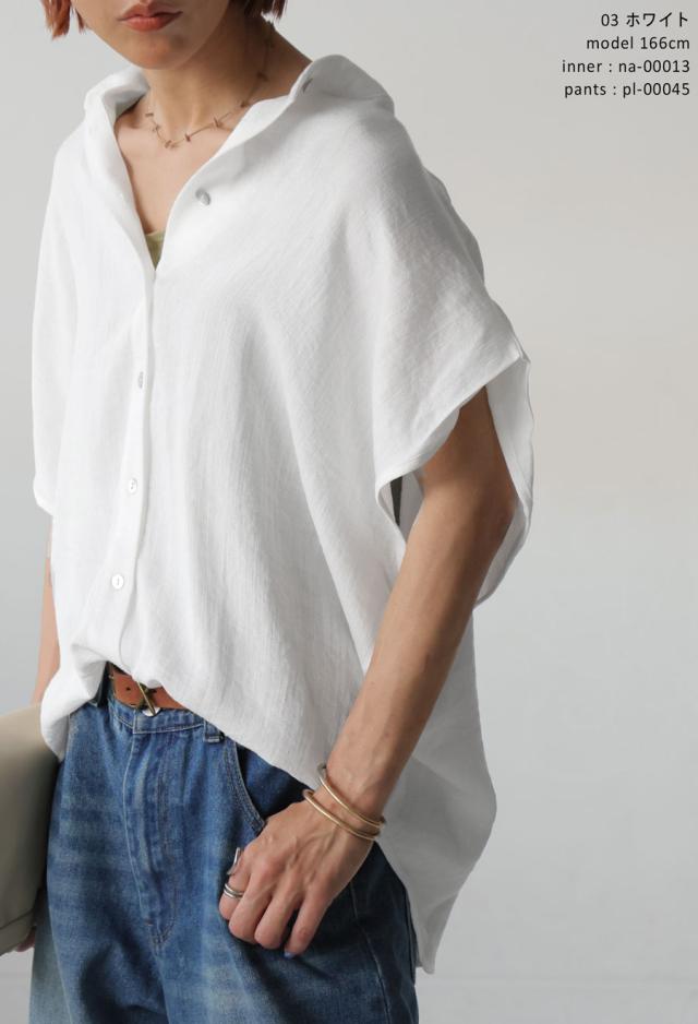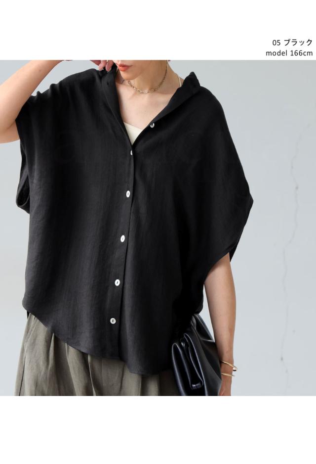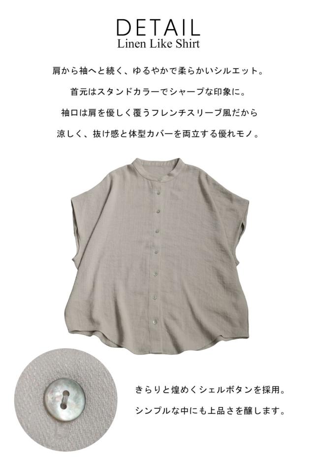 リネンライク(リネン風)のナチュラルな風合いが魅力の半袖シャツで、涼し気な着心地を叶えるレディースブラウスです。