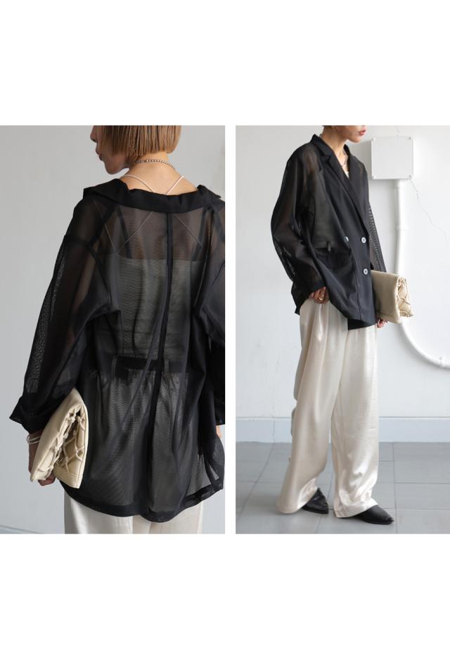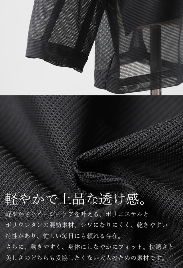 全体にメッシュ調のシアー素材を用い、空気をはらむような軽い着心地に。