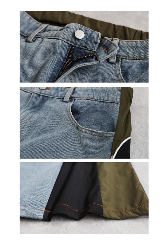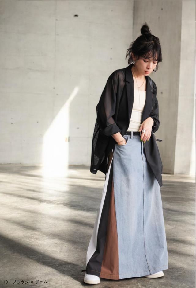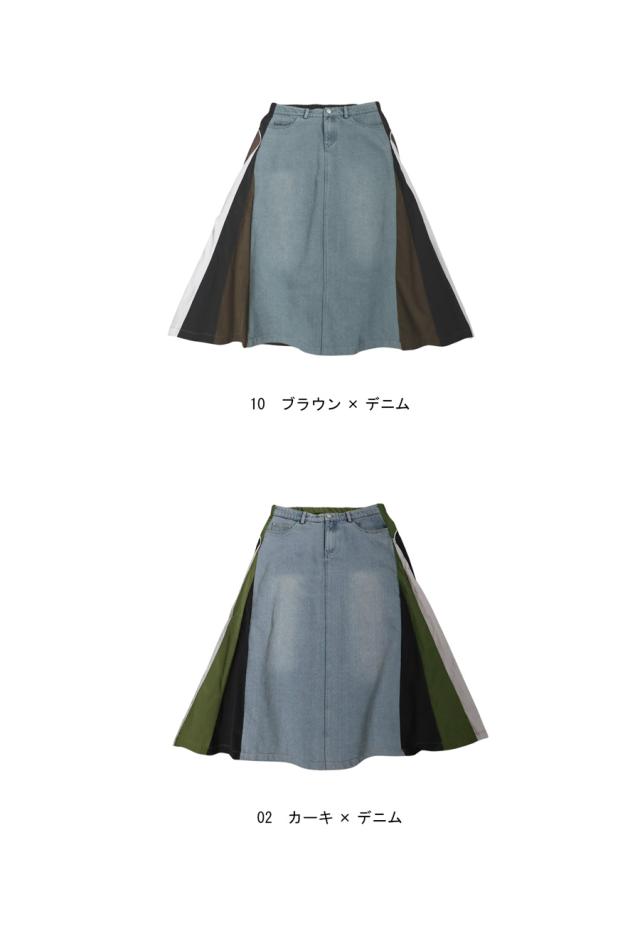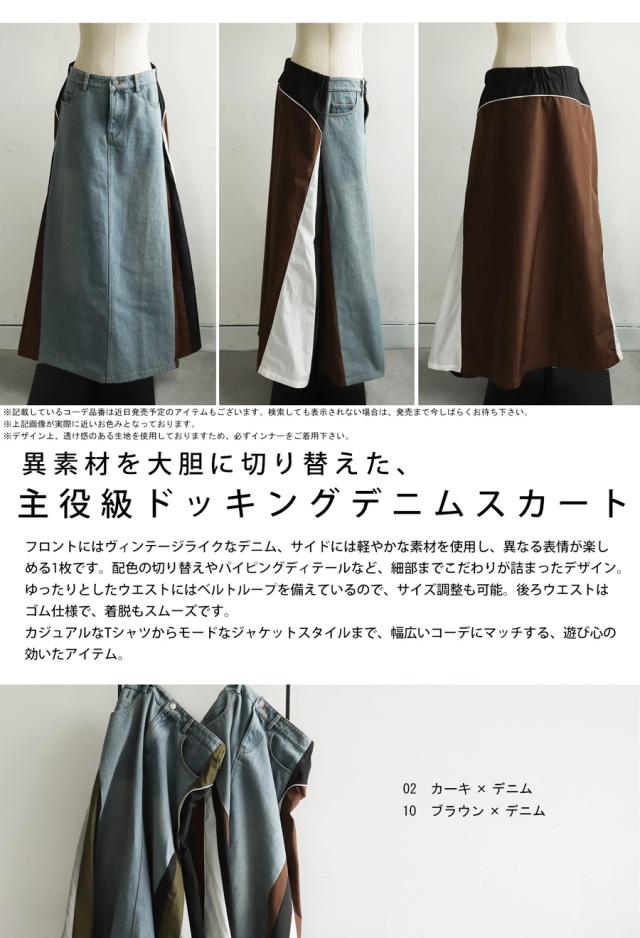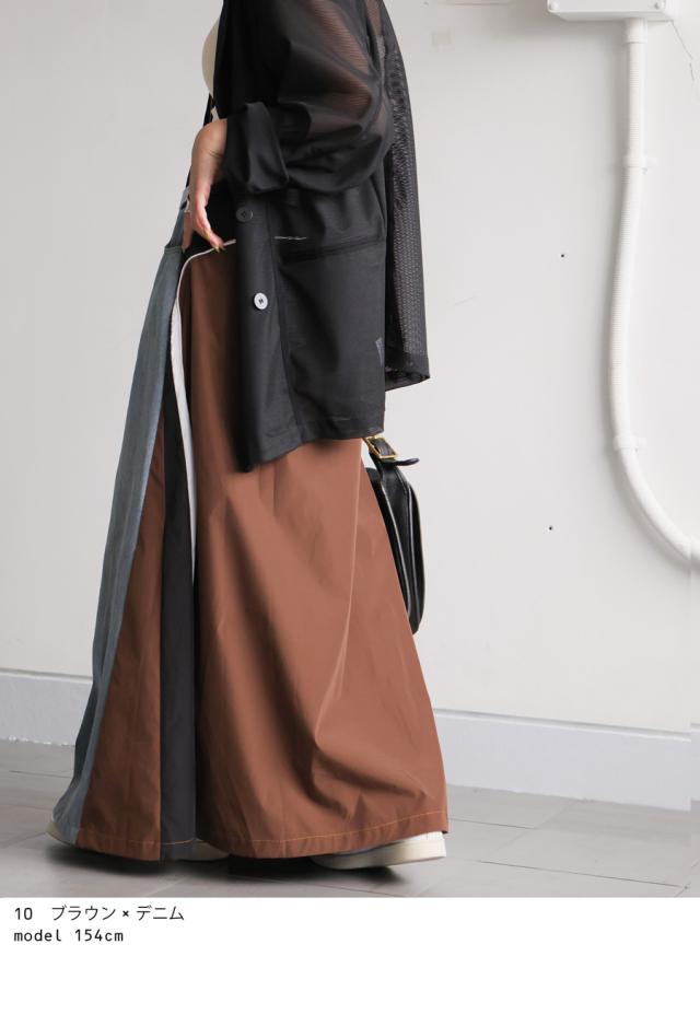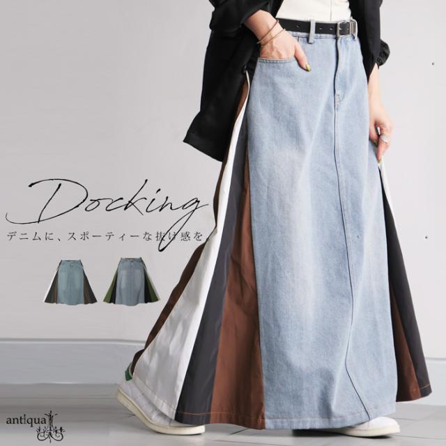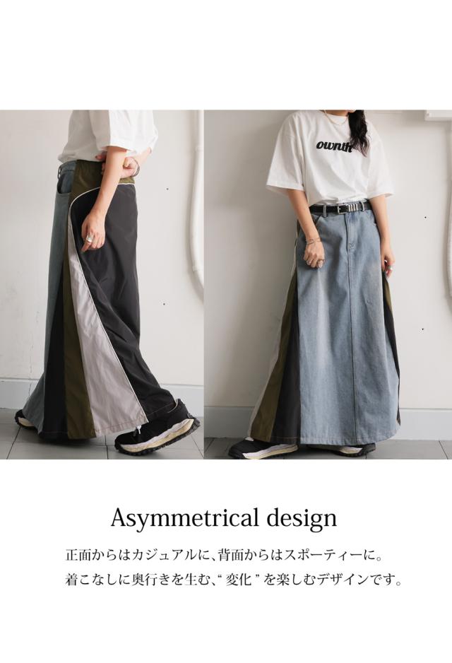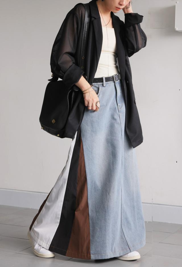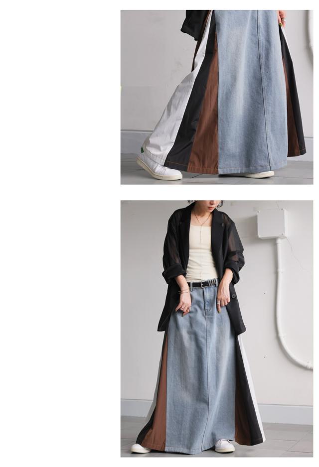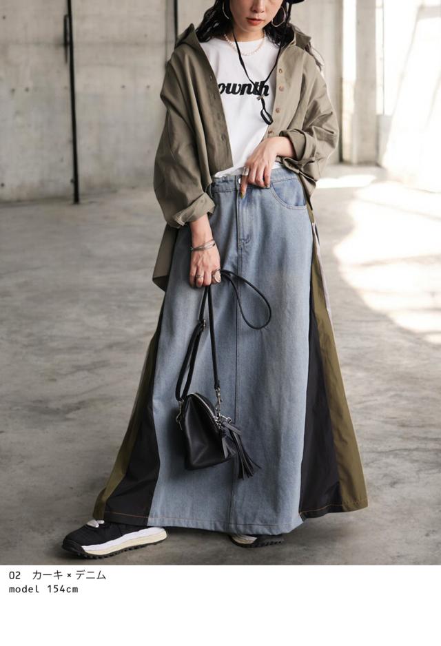異素材切り替えデニムスカート レディース ロング 送料無料・メール便不可