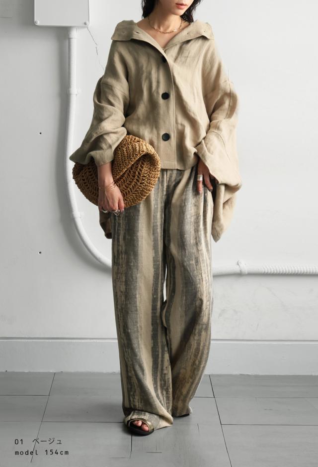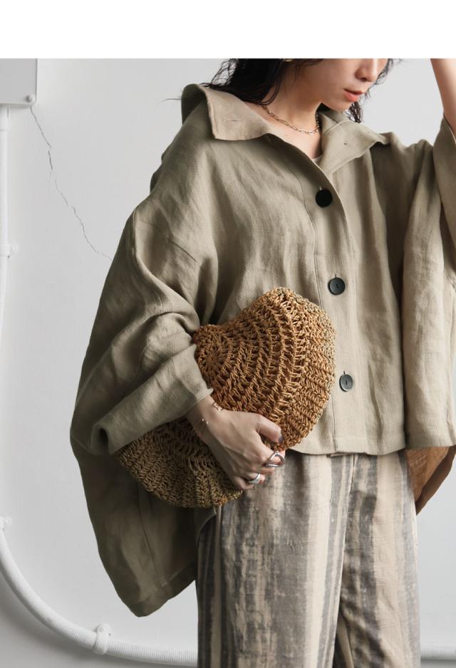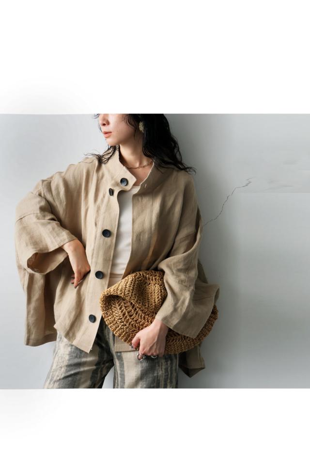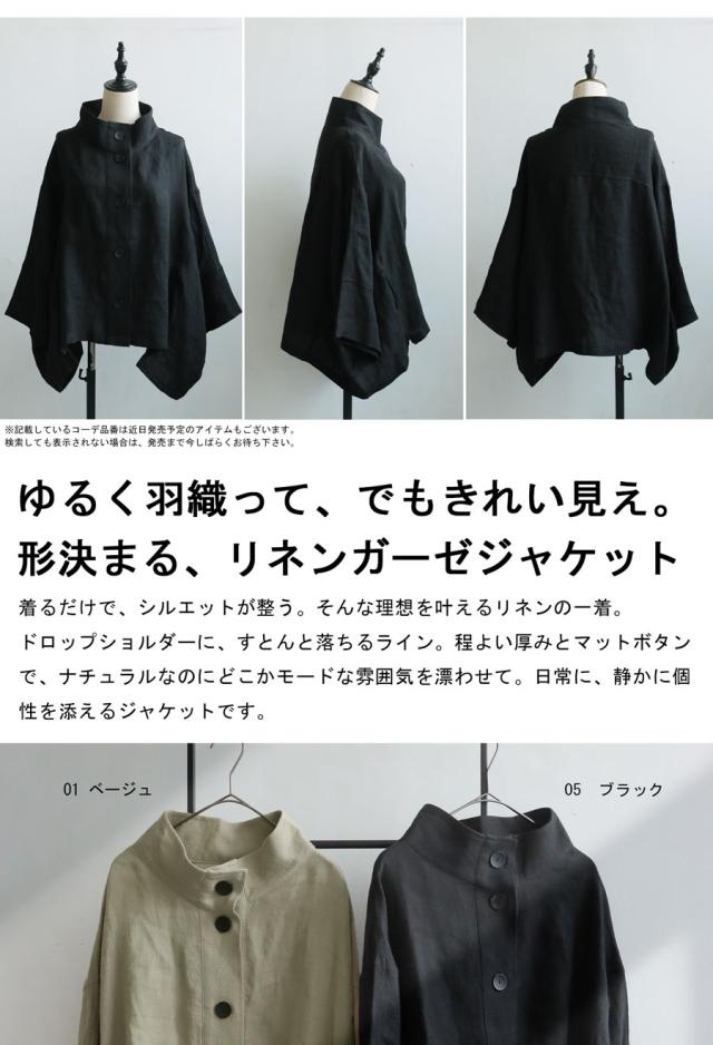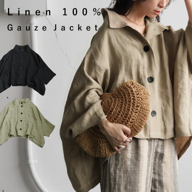 pj-01374 リネンジャケット 羽織り ライトアウター リネン 麻 ガーゼ シンプル ナチュラル ワイドシルエット コクーン カジュアル 無地 チクチクしない ガーゼ 着痩せ