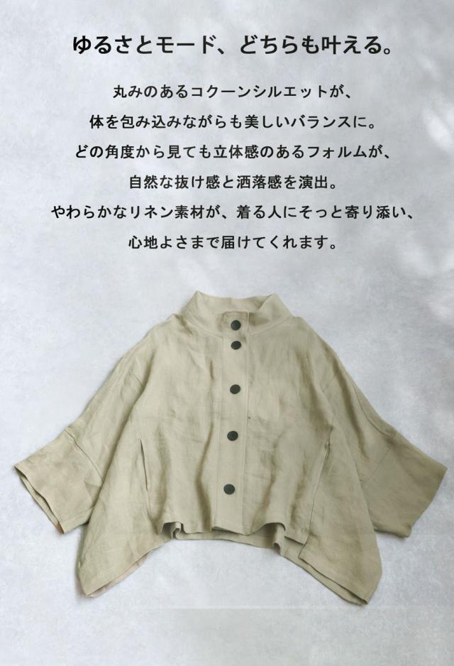 ほどよい厚みとやわらかさのあるリネン100%素材を使用した、ナチュラルな風合いのガーゼジャケットです。