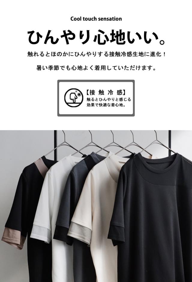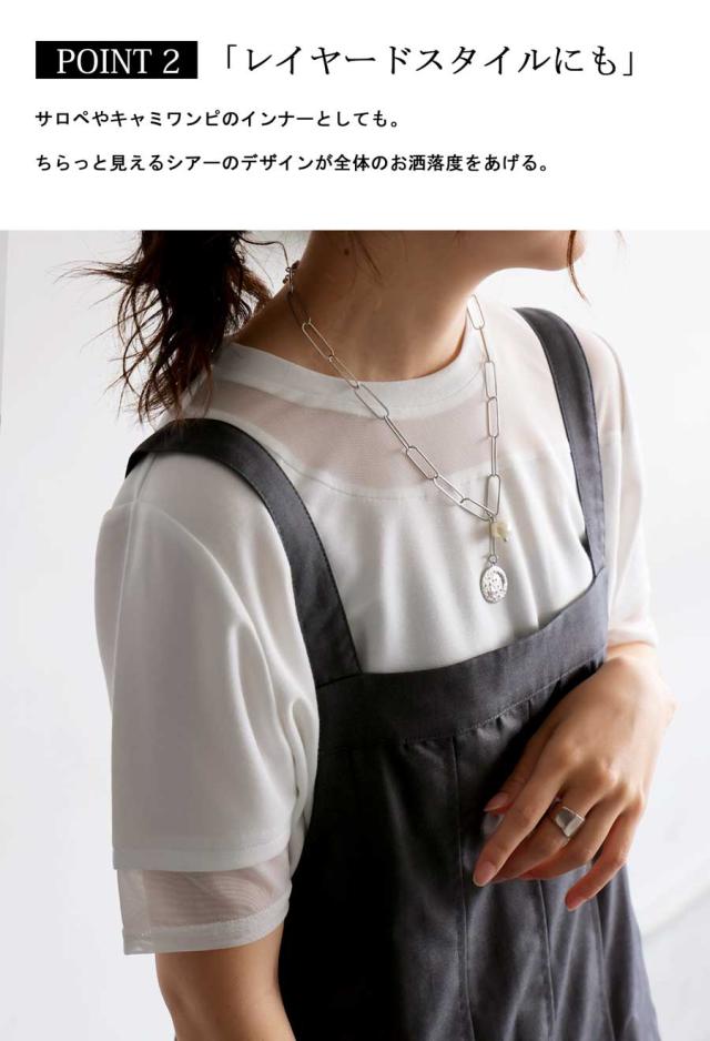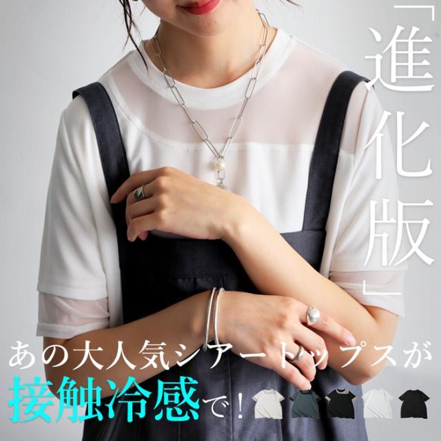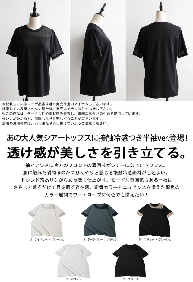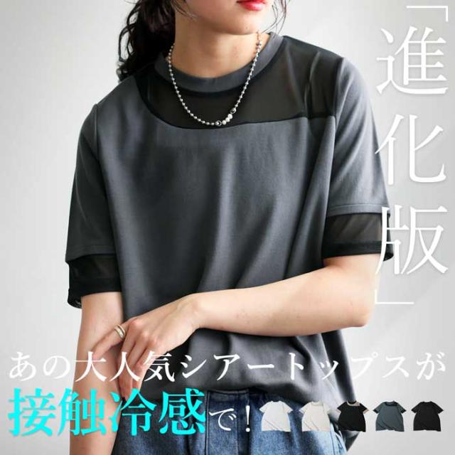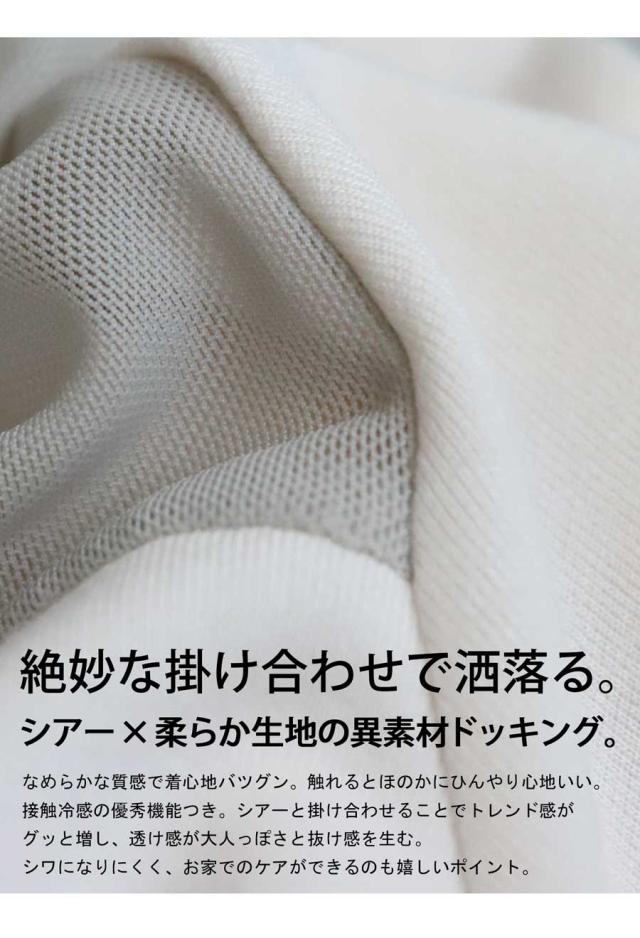 シアー切替半袖トップス レディース 接触冷感 異素材 Tシャツ・(100)メール便可