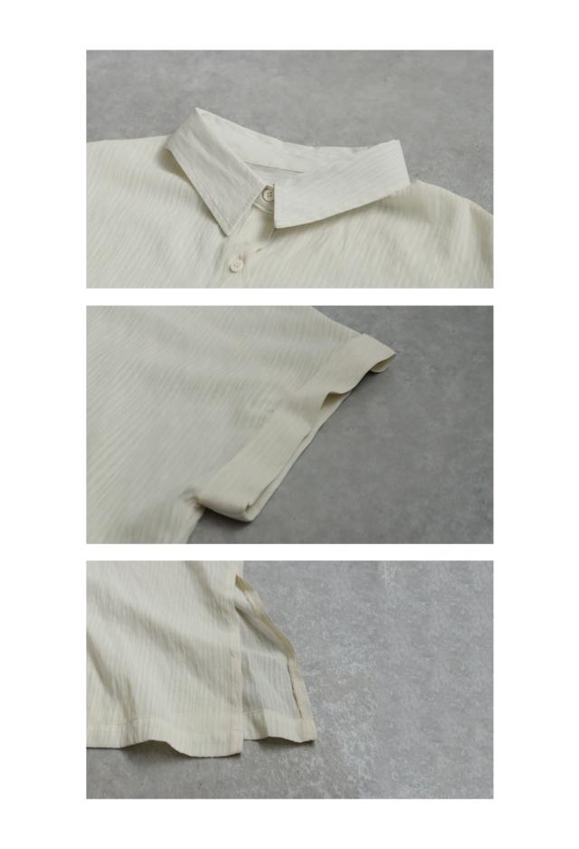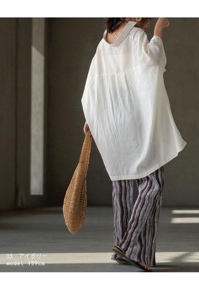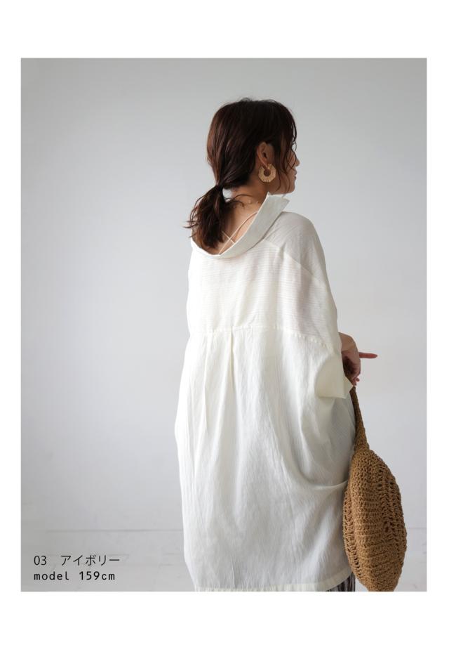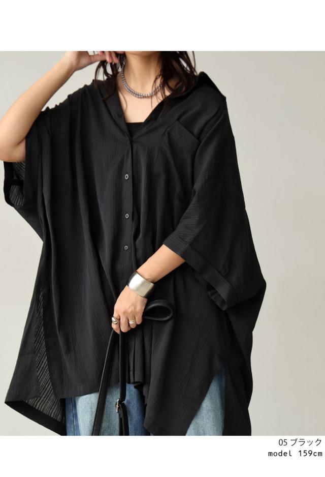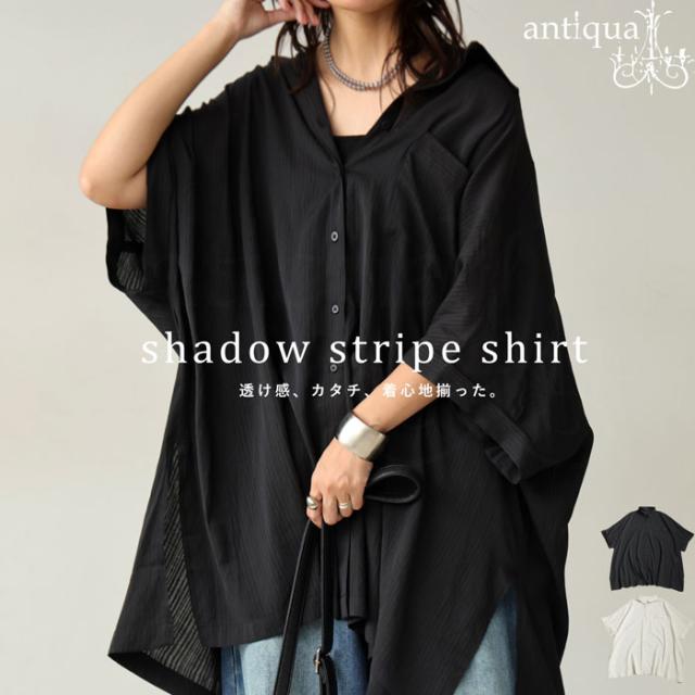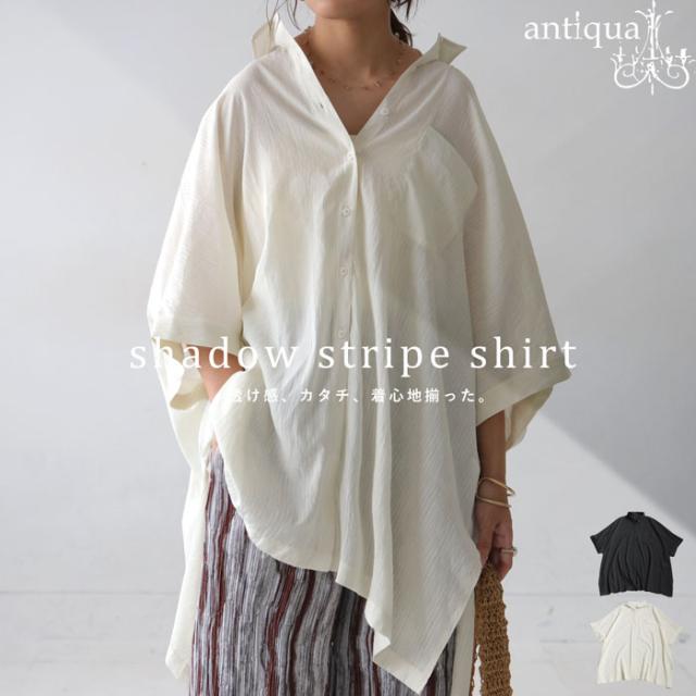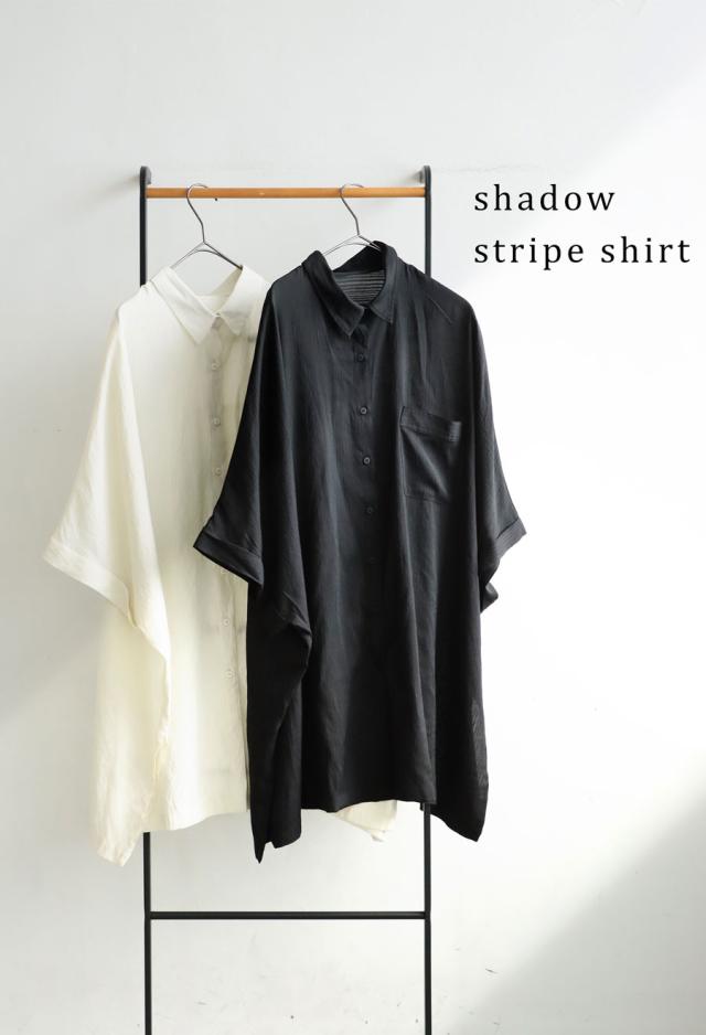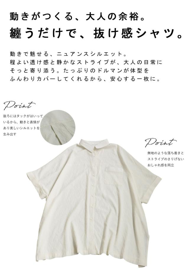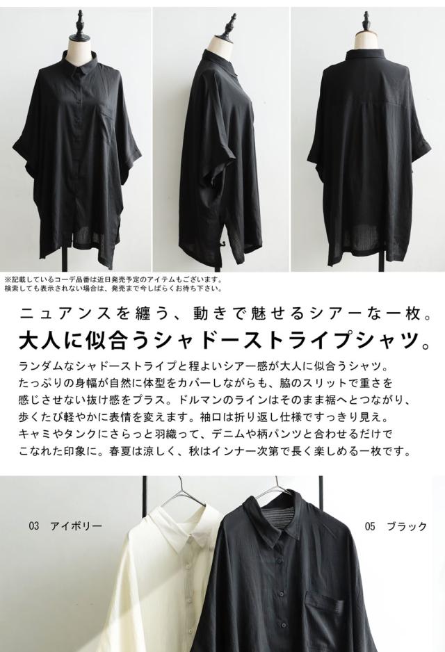 程よい透け感が軽やかな印象を与える、シャドーストライプのドルマンシャツ。