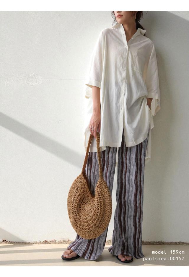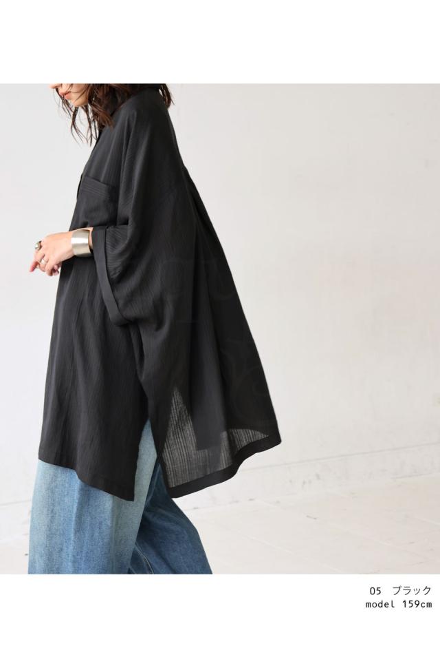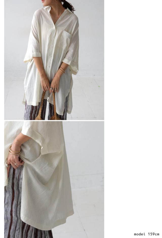 ptr-00012 シアー素材 折り返し袖 スリット入り ゆったり 前開き ボタン 透け感 体型カバー レギュラーカラー 羽織り 柄 柄シャツ 後ろタック 胸ポケット ナチュラル