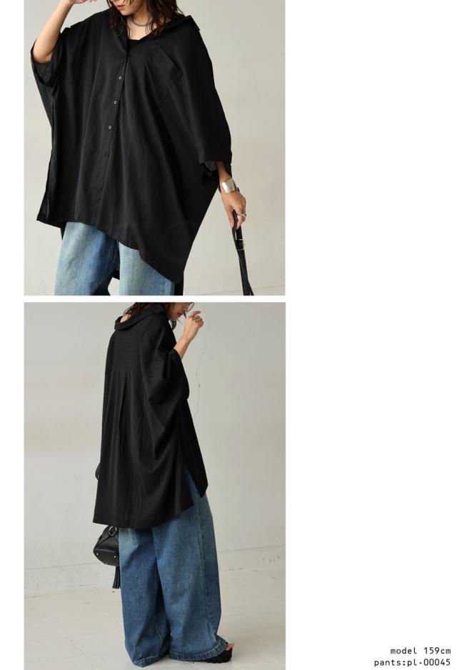 首元はベーシックなレギュラーカラーで、抜け感のあるデザインながらもきちんと感を添えてくれます。