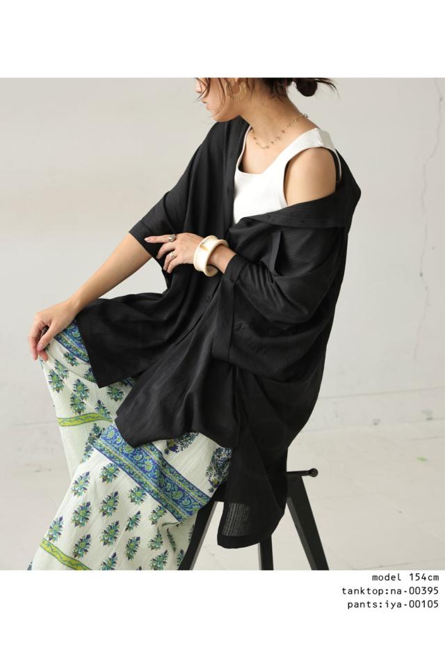 前開きボタン仕様なので、羽織りとしても活躍。キャミやタンクトップの上にさっと重ねるだけで、こなれたレイヤードコーデが完成します。