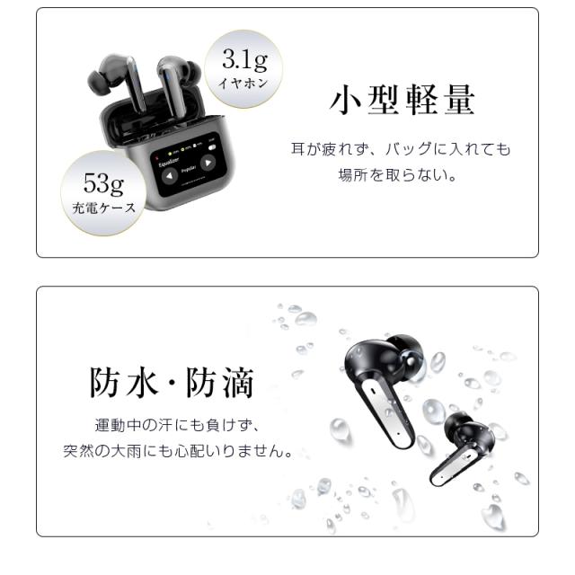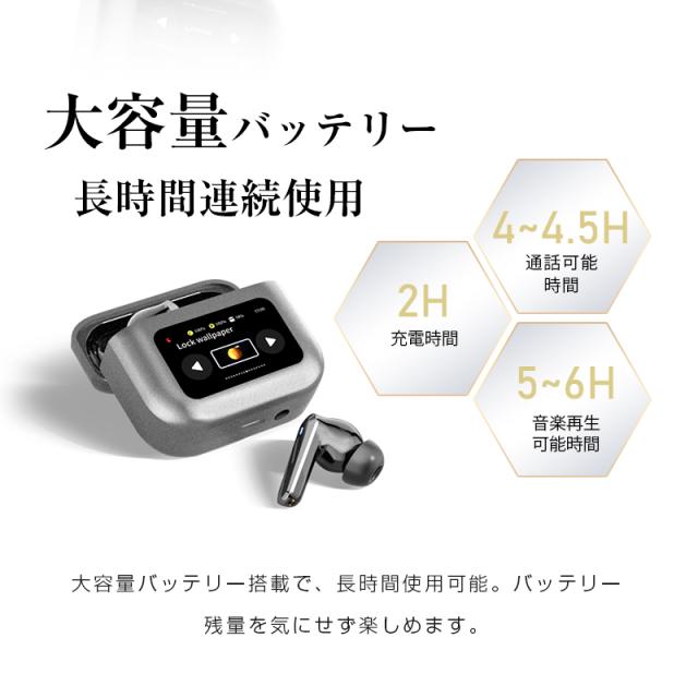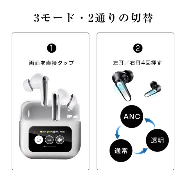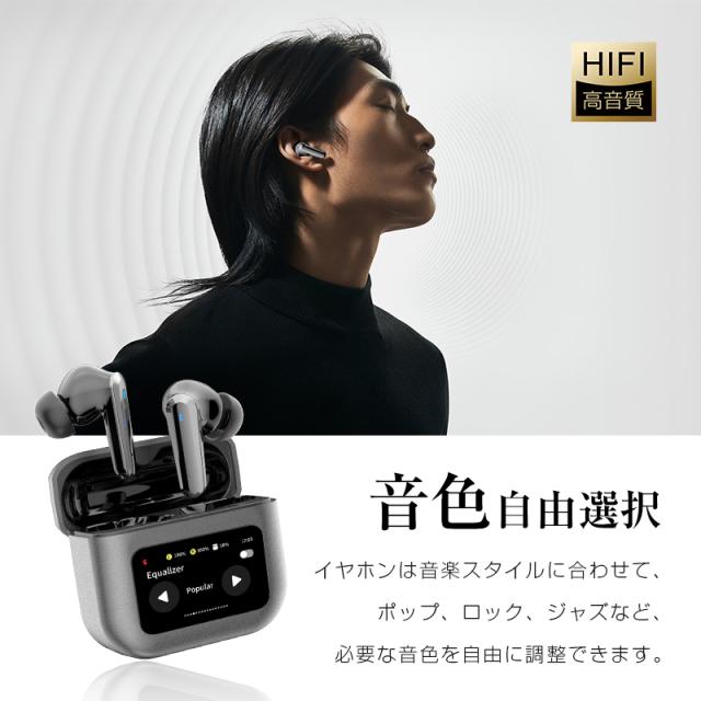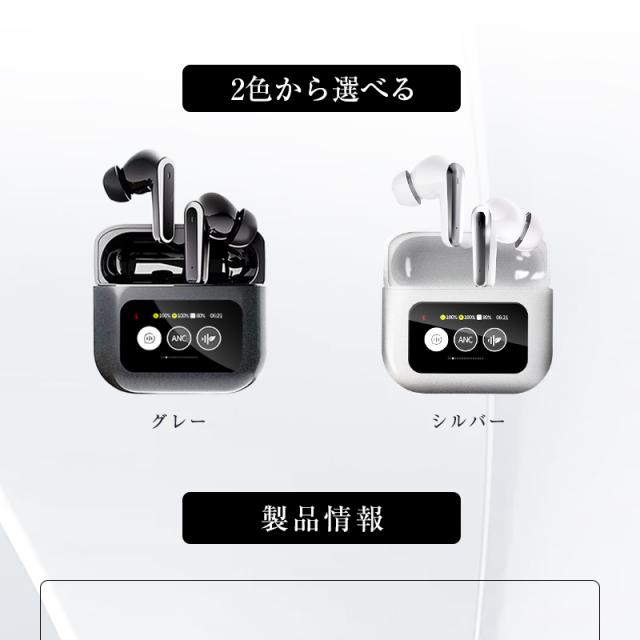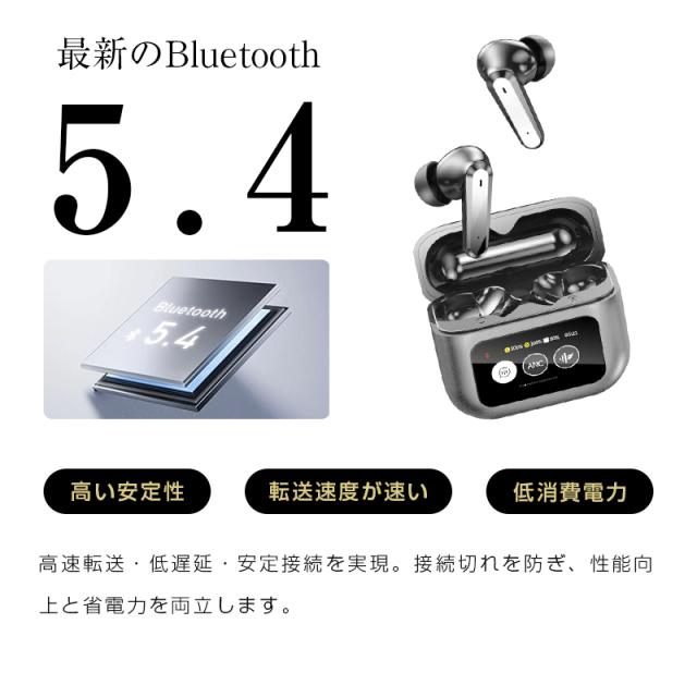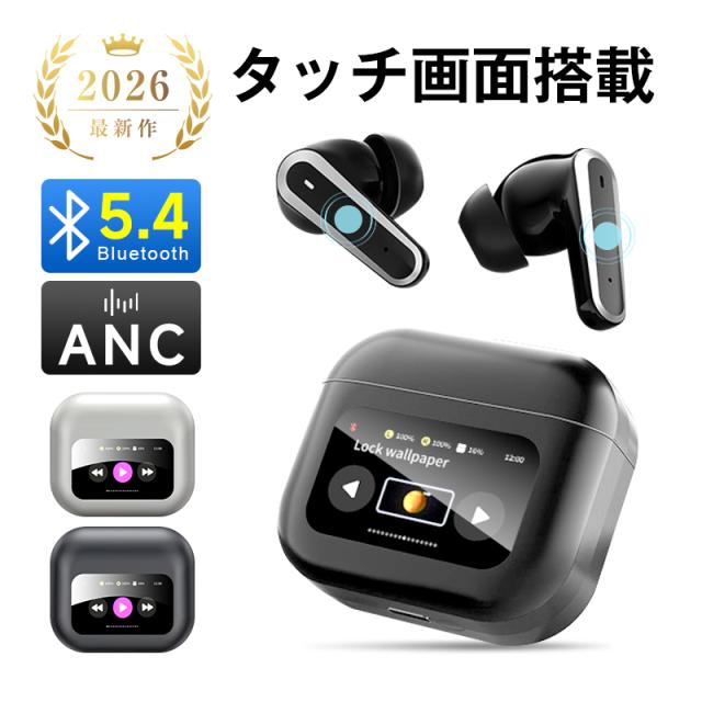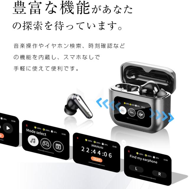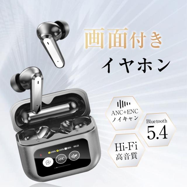 ANC対応・液晶付きイヤホン 画面付き イヤホン カナル型 ワイヤレスイヤホン Bluetooth5.4 ENC 通話ノイキャン TWS 液晶ディスプレイ カラースクリーン搭載 タッチ操作 音漏れ防止 マイク 低遅延 長時間持続 自動ペアリング Type-C充電 無痛装着 【PL保険加入済み製品・安心】
