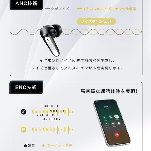 ANC(アクティブノイズキャンセリング)とENC(エコノイズキャンセリング)機能を搭載し、音質と通話品質を大幅に向上させます。