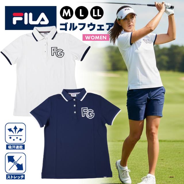 フィラ レディース ゴルフ FILA 女性 ポロシャツ 半袖 ウェア おしゃれ 白 紺 ロゴ スポーツ 吸汗速乾 ストレッチ性 伸縮性