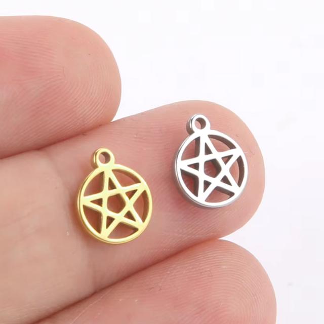 [ No.1 ]スモールステンレスチャームパーツ(五芒星)1個販売 星 穴あき 穴あり ペンダントトップ ネックレス ブレスレット アクセサリー ボディピアス イヤリング メンズ レディース 手作り 作る 製作 修理 部品 クラフト 金具